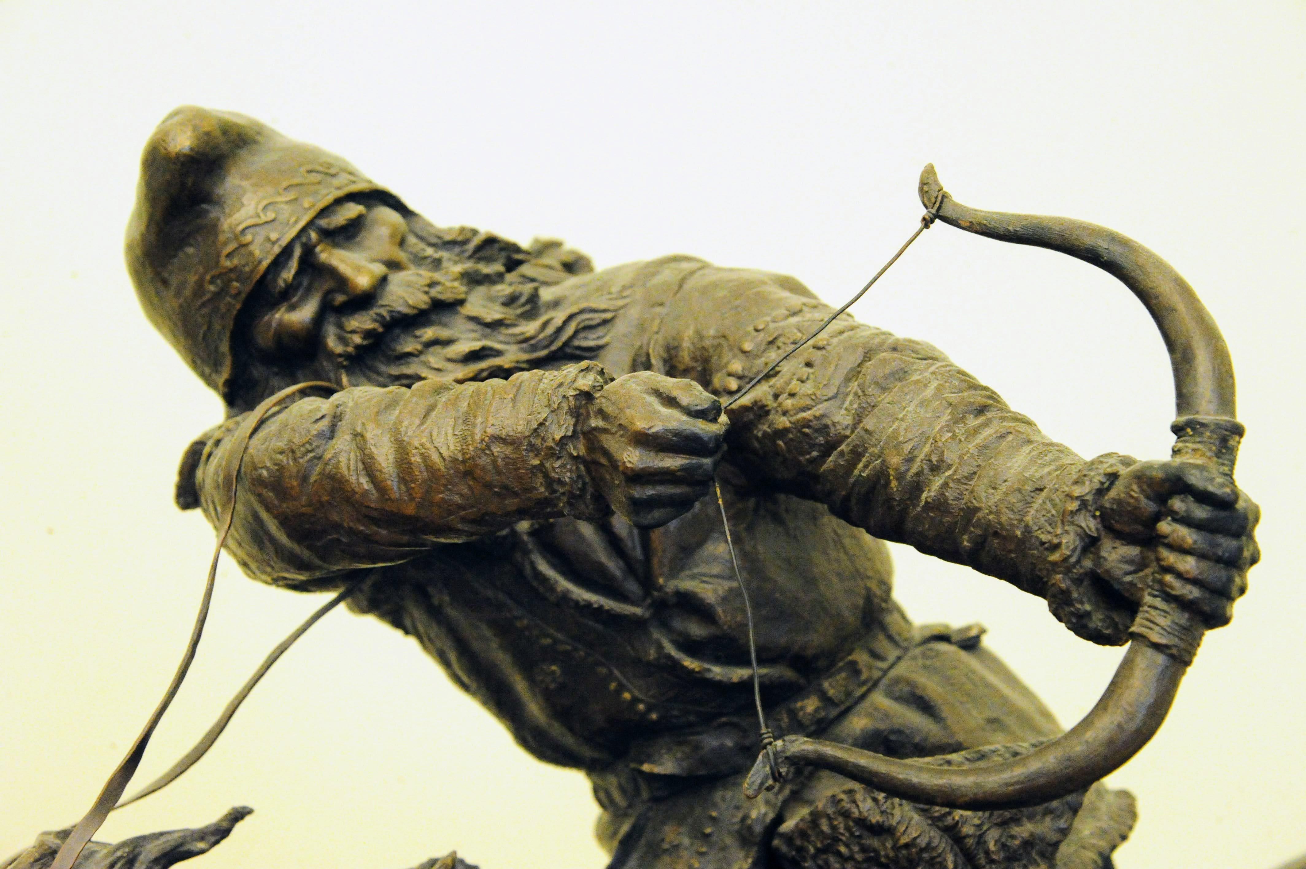 The Scythians were the steppe nomad culture that dominated the Eurasian steppes roughly 700-300 BCE — the same people whose extraordinary gold artifacts make up one of the Hermitage’s most prized collections. Pozen was fascinated by that history and this piece captures the thing the Scythians were most feared for — mounted archery at full gallop, the original horse archers of the ancient world.
