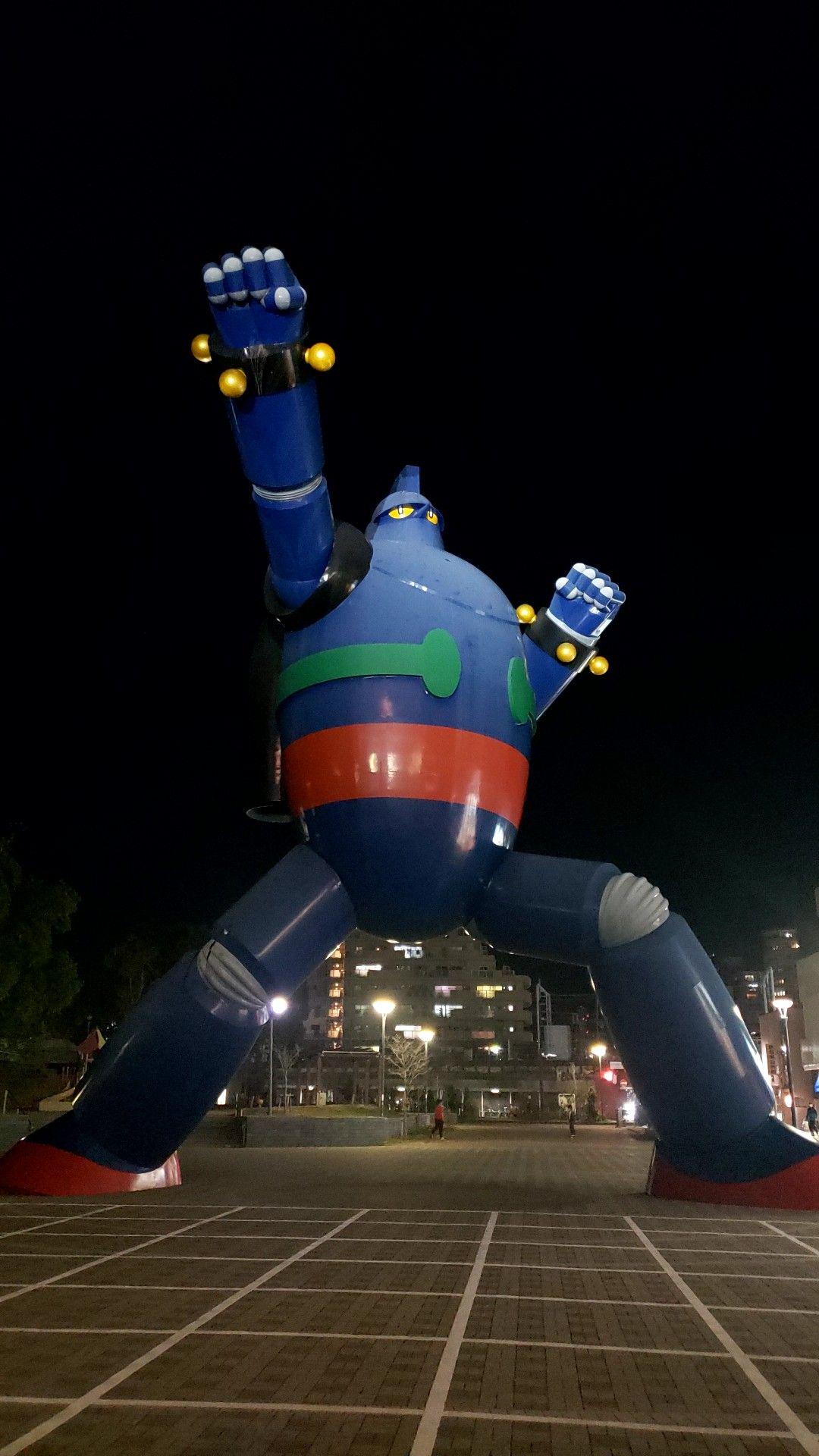 ‘ Tetsujin 28-go ‘ manga robot 1:1 scale reproduction . Original character created by Mitsuteru Yokoyama in 1956 . Erected in 2009, the monument is meant to serve as a symbol of community revitalization following the Great Hanshin earthquake that devastated Kobe in 1995.