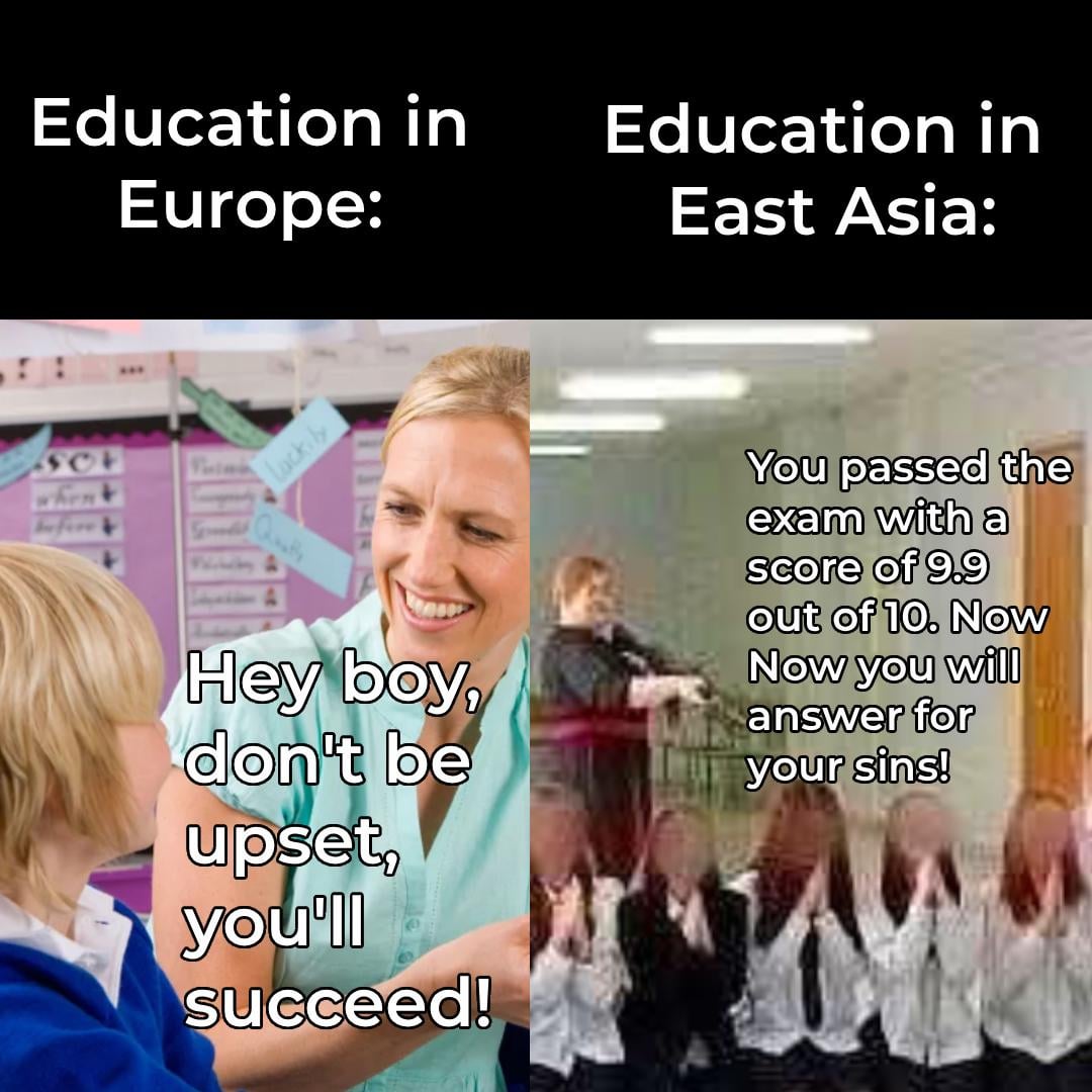 I will never forget when my friend from China cried after passing an exam with 8 out of 10.