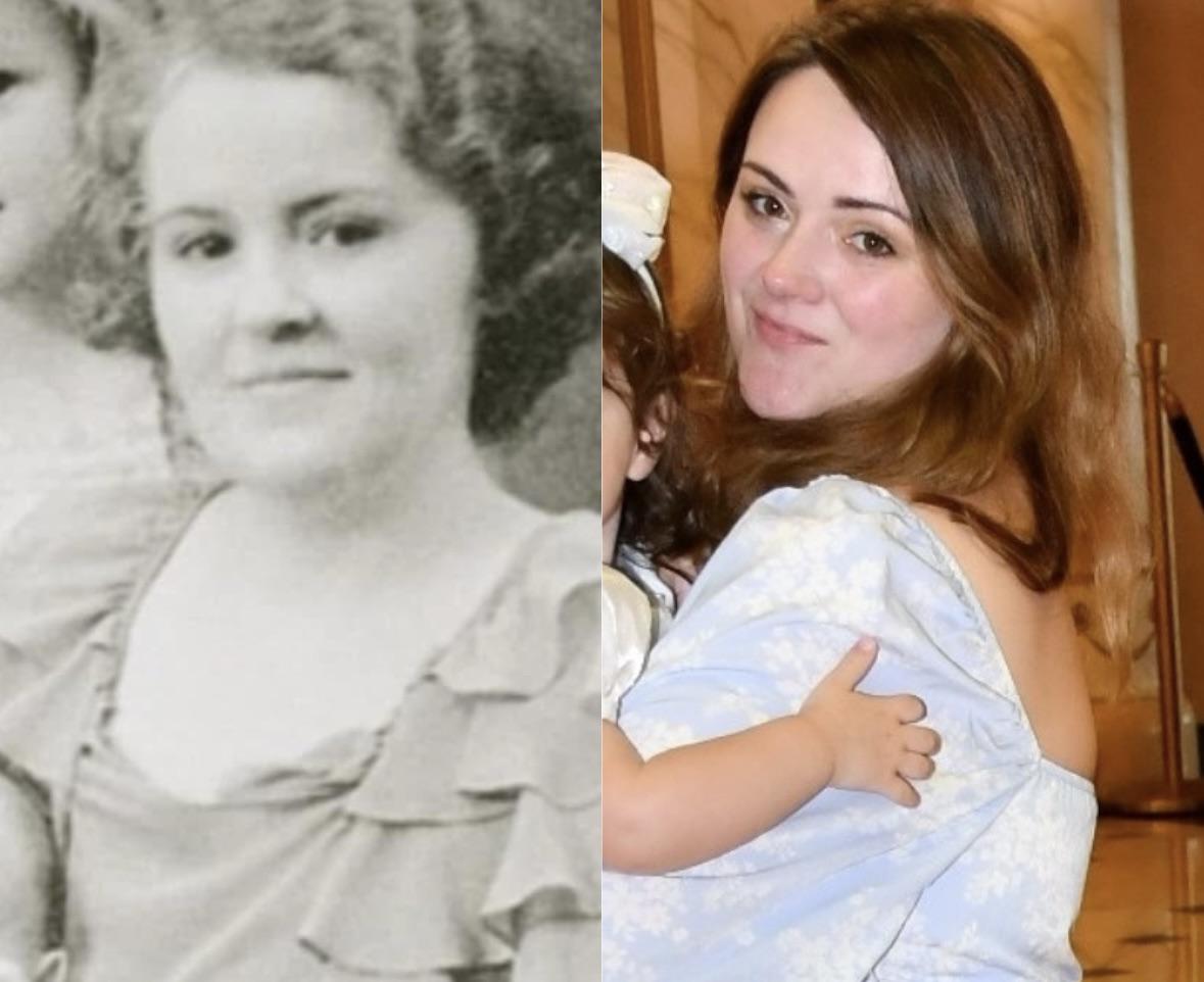 This is like me and my paternal grandmother. Especially when I was a baby, I popped out looking just like memaw. No paternity test required. 😀