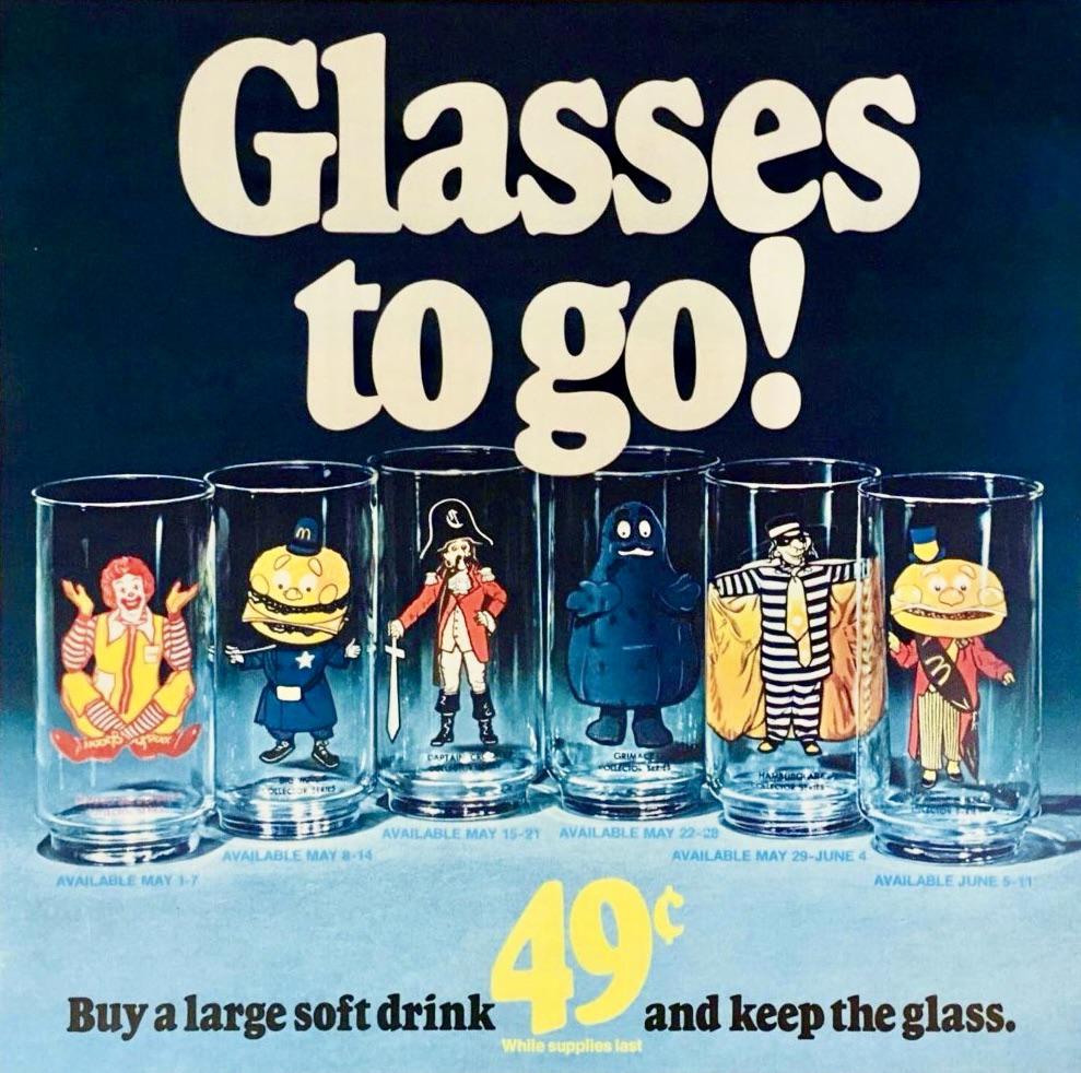 Idk if it’s the 70s glasses or the 90s glasses, but I did work for a client one time who had these McDonald’s glasses in their cupboards. Talk about a relic, a cool one ngl.