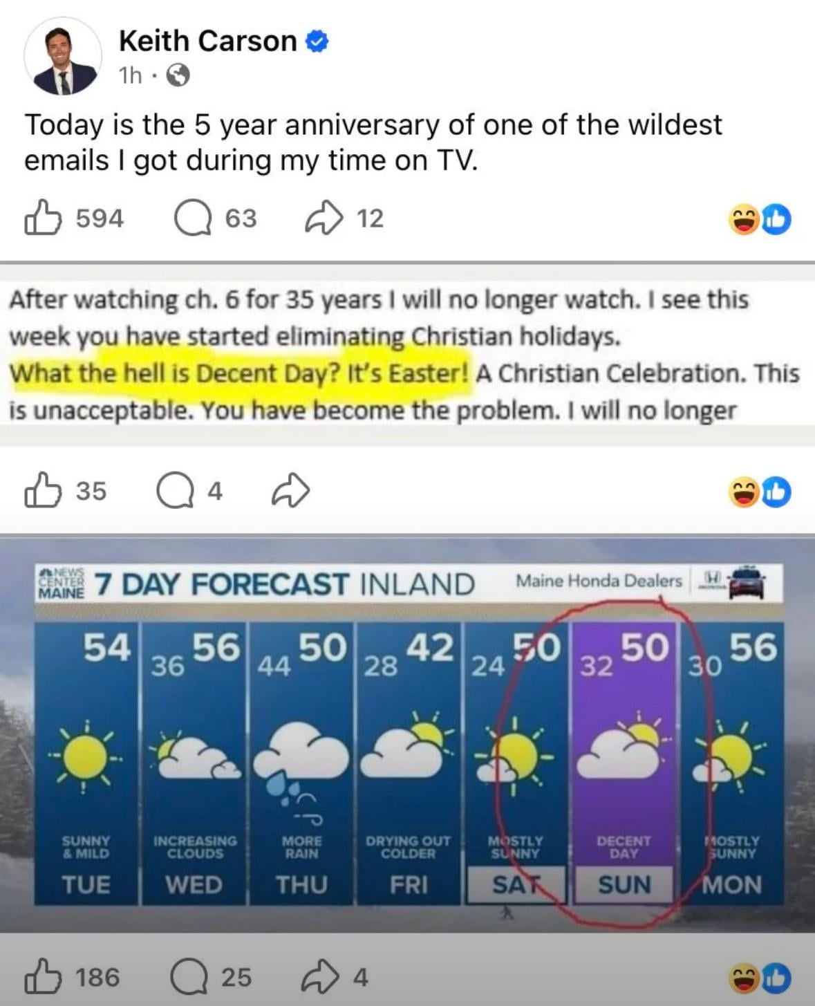Does this idiot not understand that “decent day” is talking about the weather?