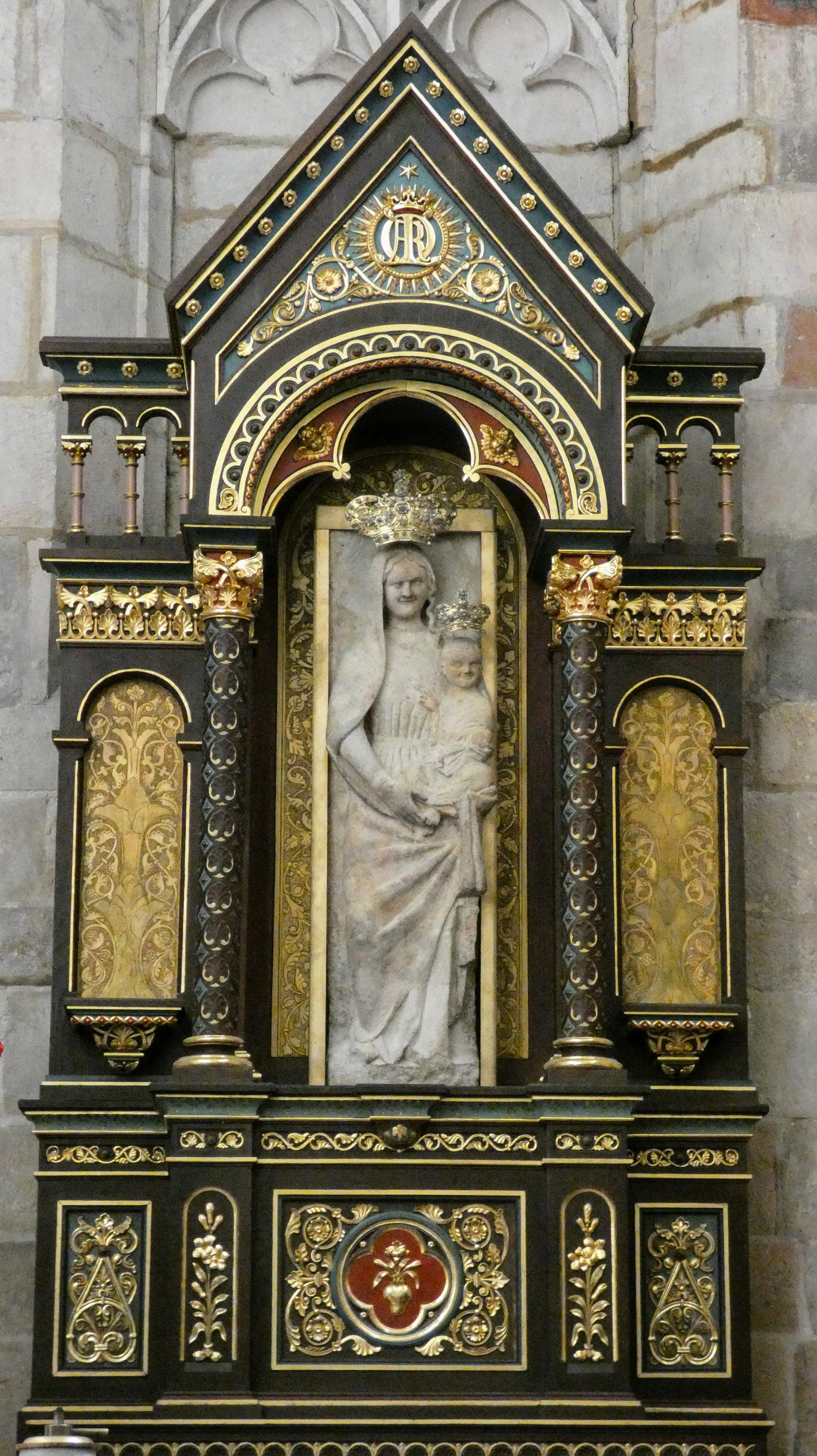 Łokietek’s Madonna, late 13th century, stone, made in Hungary or Germany, Collegiate Basilica of the Birth of the Blessed Virgin Mary in Wiślica. [2747×4896]