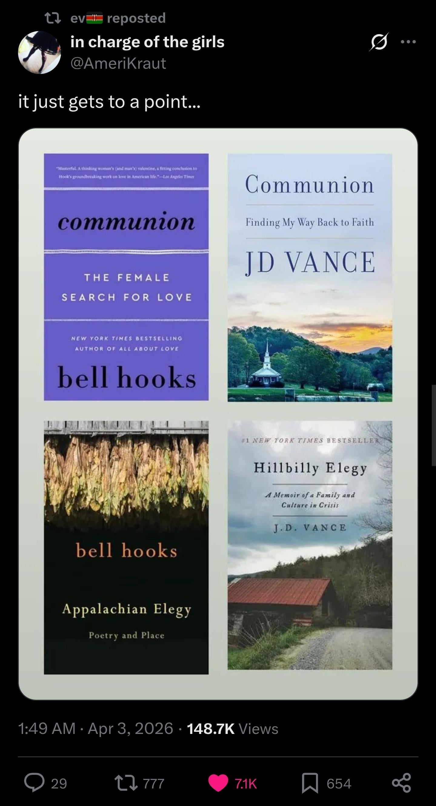 The fact that he’s poaching names from Bell Hooks makes me so angry.