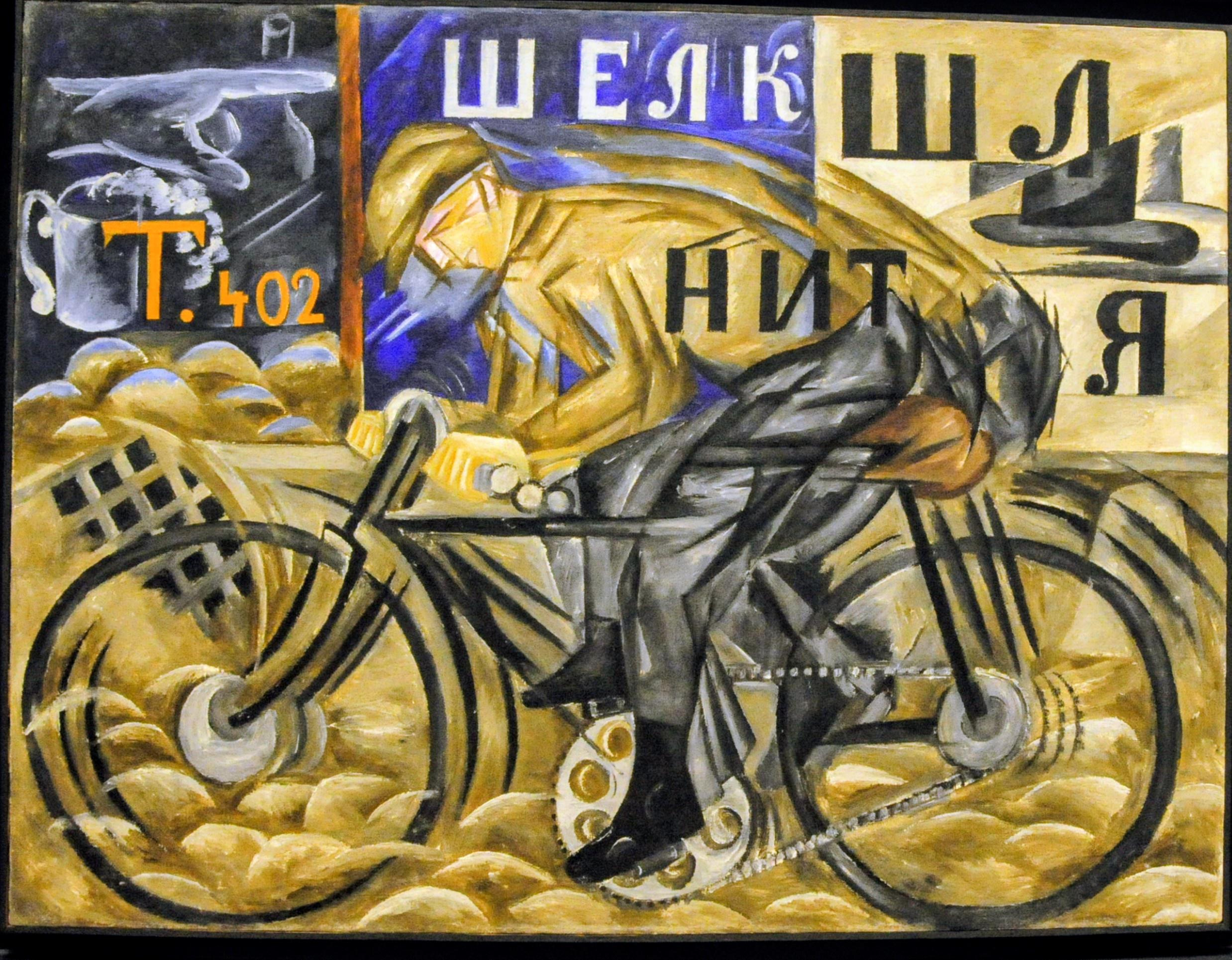 The Cyclist — Natalia Goncharova, 1913 — 78 × 105 cm — Russian Museum, St. Petersburg | Aug 10, 2004 [OC] [2476×1930] by WRXminion