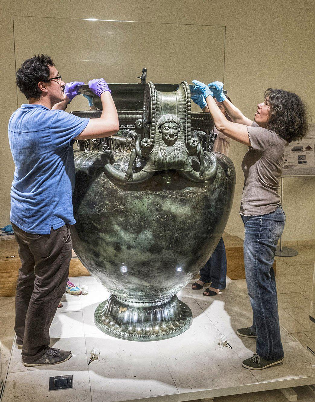 The Vix Krater, a 6th century BC Greek bronze vessel imported to the Celts. Discovered in Bourgogne/France in the tomb of the “Lady of Vix,” a Celtic princess. It remains the largest known metal vessel of Western antiquity [1200×900]