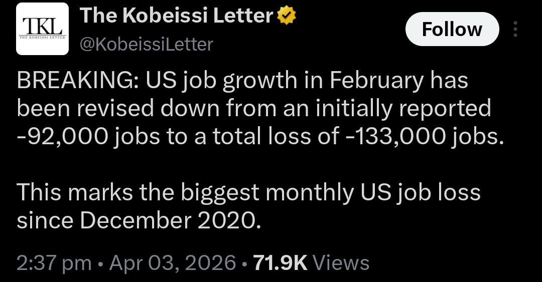 And they expect us to believe they added 178,000 in March while the war raged and oil surged 🤣