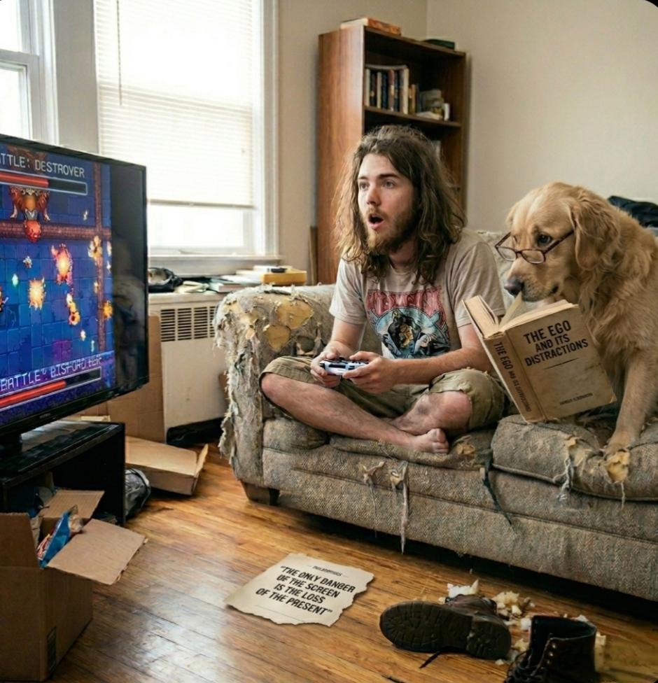 Mentre l'attenzione si perde in obiettivi virtuali, la realta' fisica reclama il suo spazio in modi imprevedibili. Un cane che sfascia il divano e si rifugia nella lettura… e' il segnale di una presenza che viene a mancare. Recuperare il focus significa integrare il digitale senza farsi sostituire da esso, tornando a presidiare il proprio tempo e il proprio ambiente.