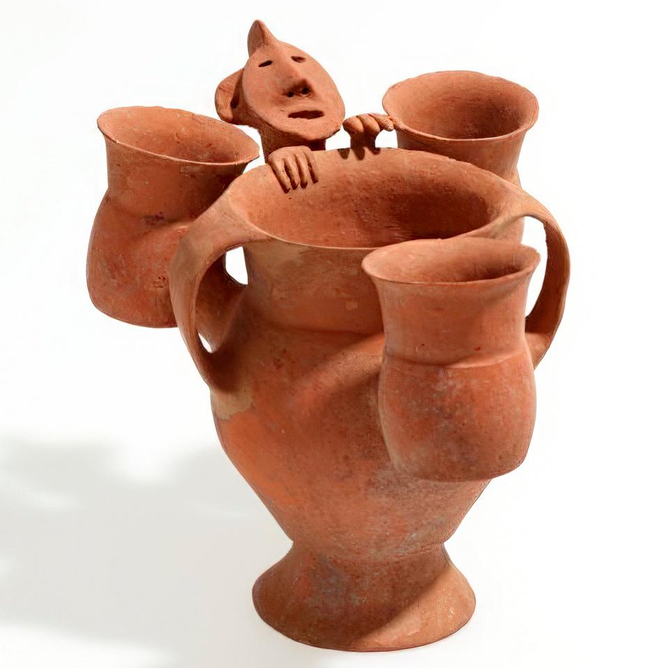 Jug with human figure holding the rim. China, Qijia culture, 2000-1000 BC [960×960] by MunakataSennin