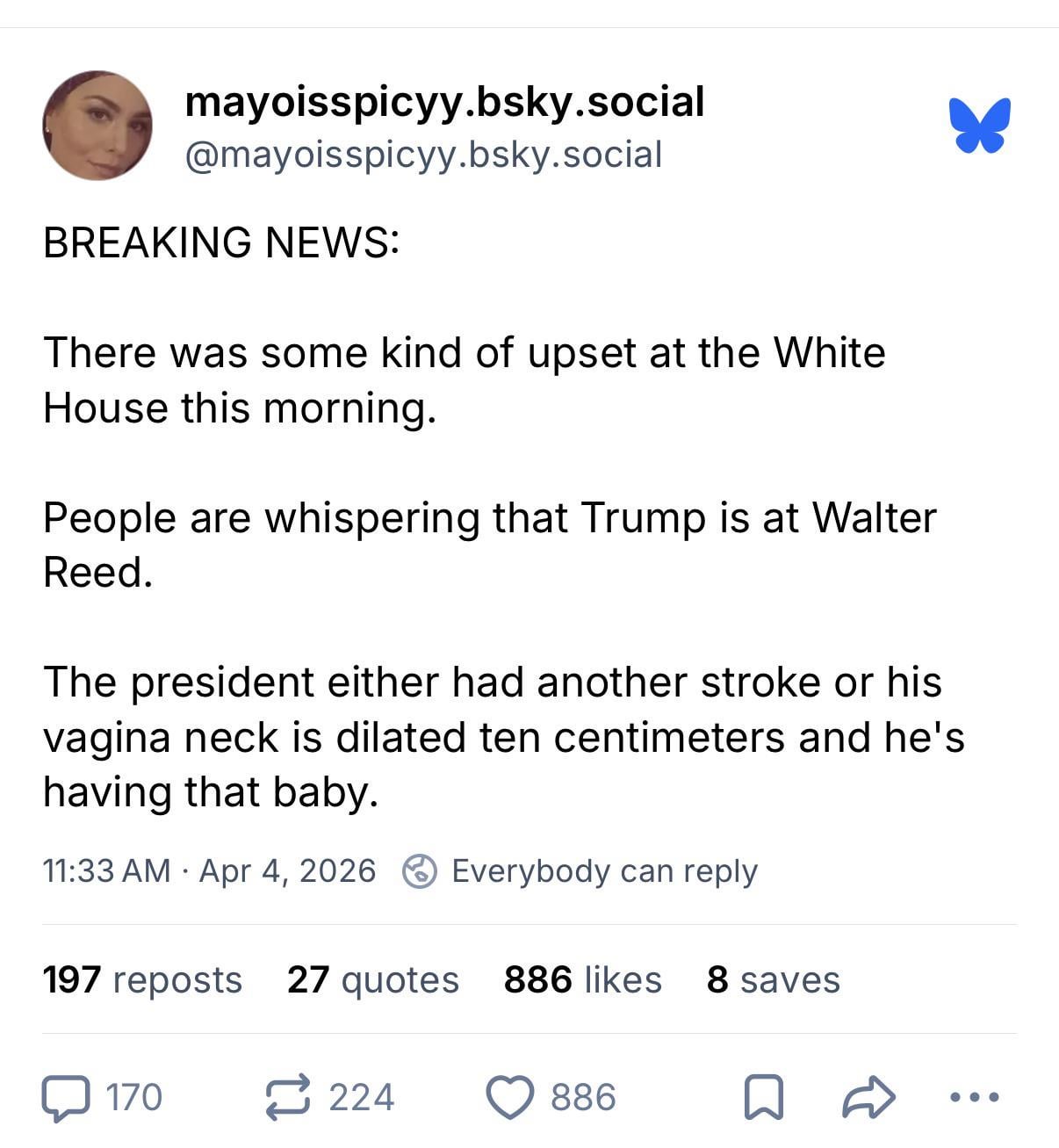 It says a lot that the President could be suffering a major medical emergency and people are rooting for the medical emergency. Any normal person would see that as a sign to be less of a monster, but Trump probably sees it as a challenge to be ever worse