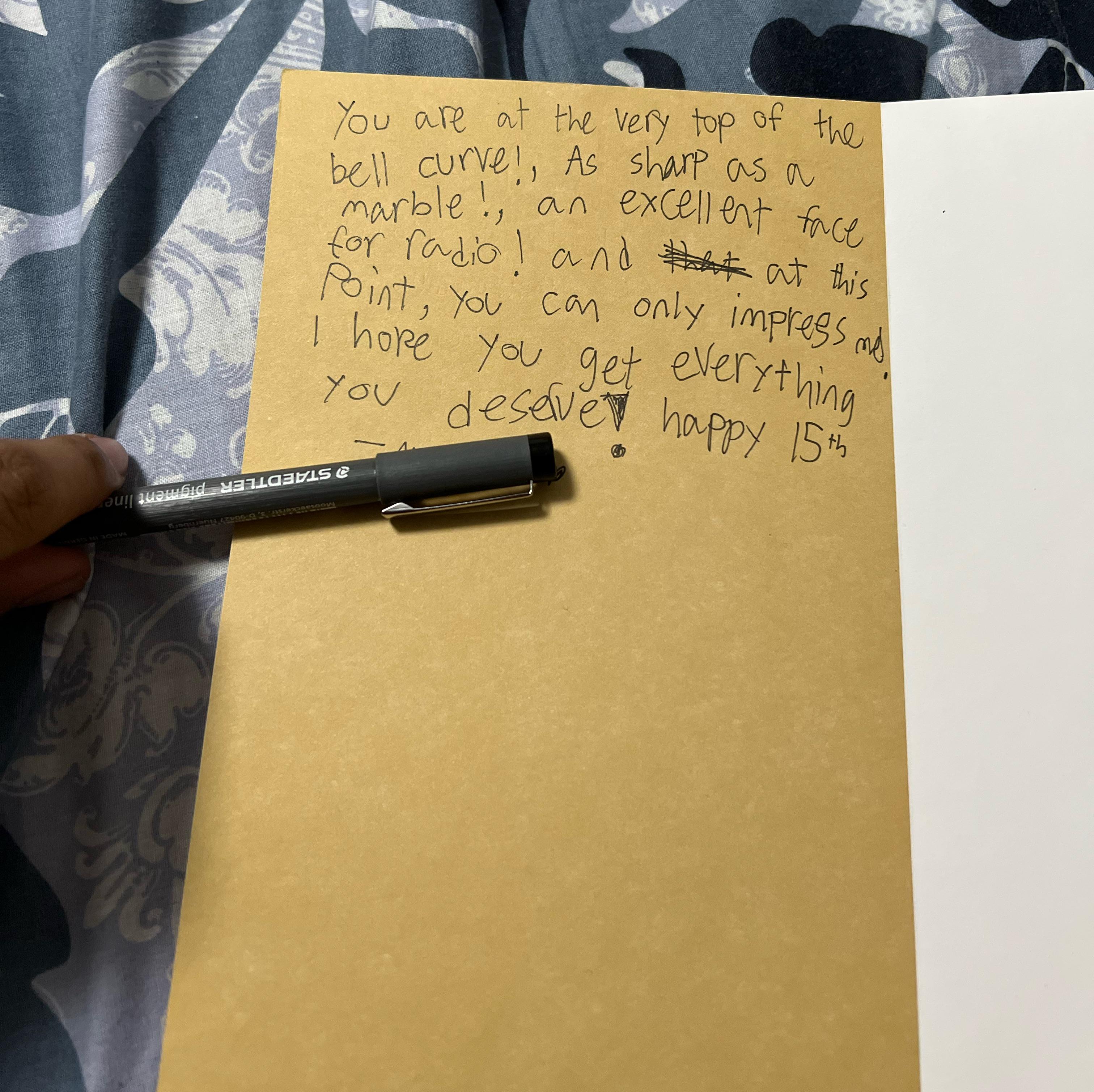 I think it’s a sweet/funny card, sorry everyone is being mean about your handwriting. It’s a nice card! My brother doesn’t write me cards for my birthday, I’m sure your brother will appreciate that you thought of him.