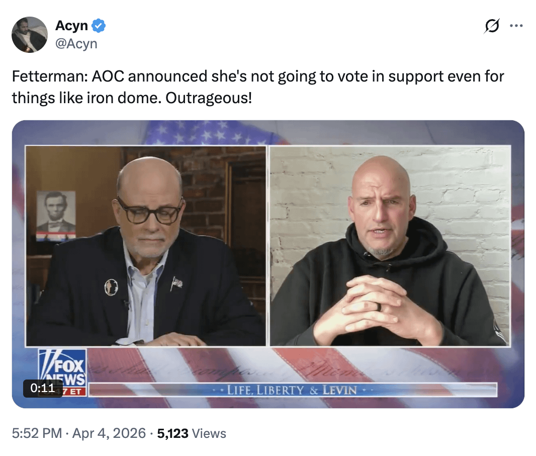 So Fetterman believes in the iron dome. He’s probably all in on the tooth fairy as well.