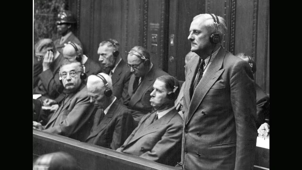 Otto Ambros, standing, listens to his verdict of eight years in prison by the U.S. Military Tribunal in Nuremberg, Germany, July 30, 1948. He only served three years before he was released and hired by major corporations because his expertise was too valuable. (1280 x 729)
