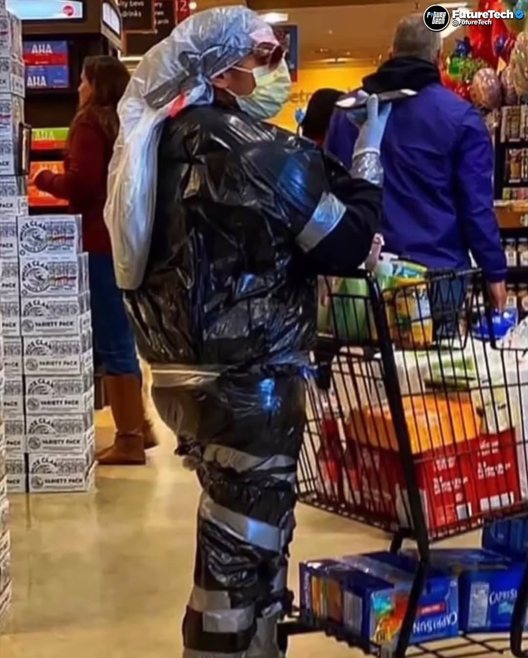 This one is so funny to me cause that is genuinely a half decent protection. Just not for viruses. (Add an airtight dust mask to it and you got yourself protection from fallout)