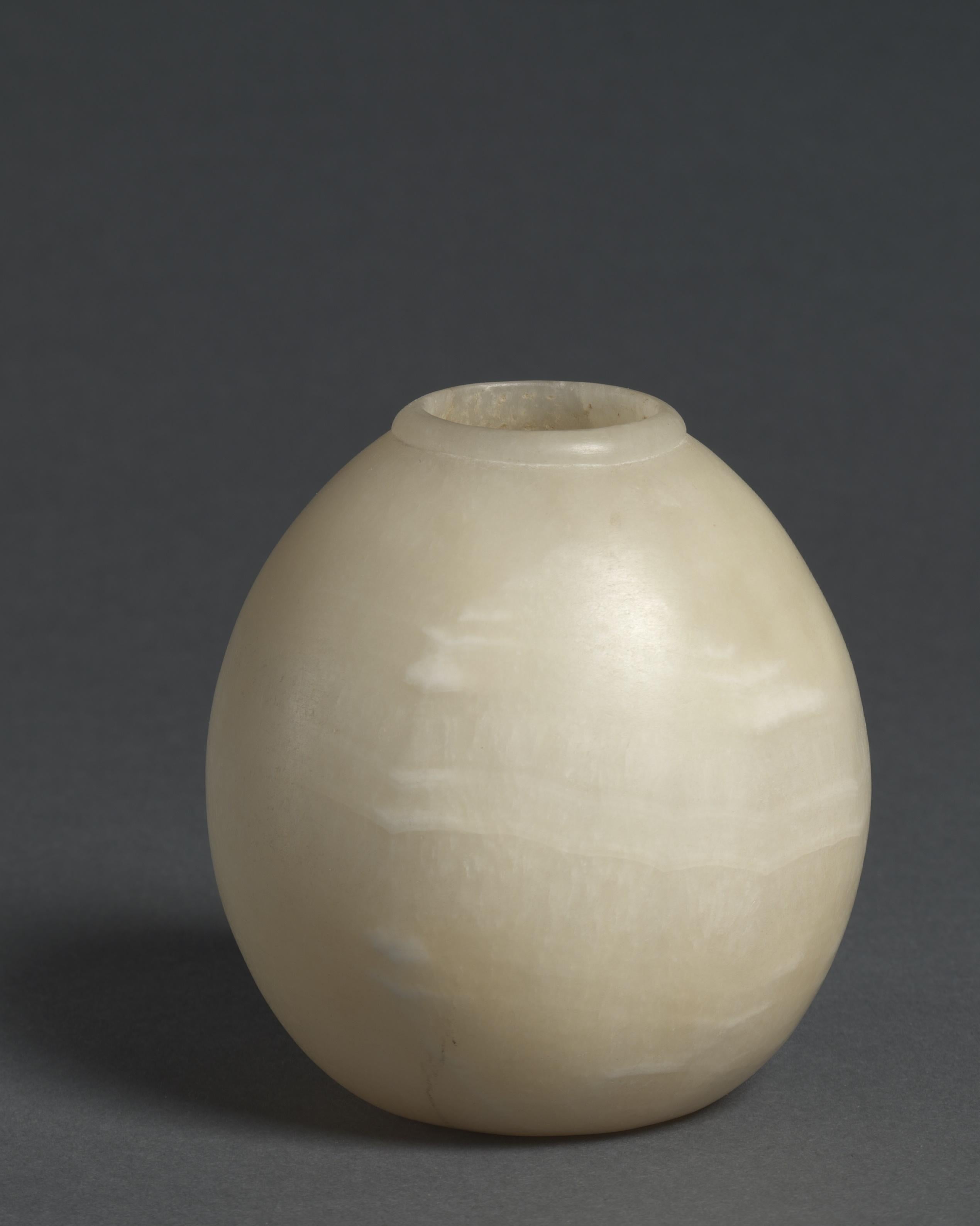 Travertine vessel in the form of an ostrich egg. New Kingdom Egypt, 18th dynasty, ca. 1540-1296 BC. Cleveland Museum of Art collection [2539×3174] by oldspice75