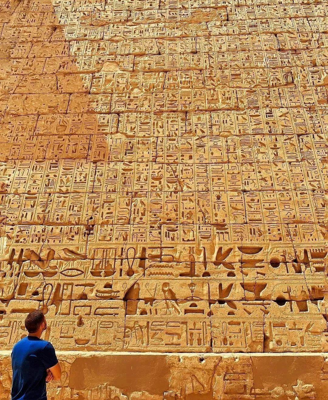Hieroglyphic inscriptions on the walls of the temple of Ramesses III (1186–1155 BC) at Medinet Habu, on the West Bank of Luxor, Egypt. [1080×1318] by yimaxshaeta