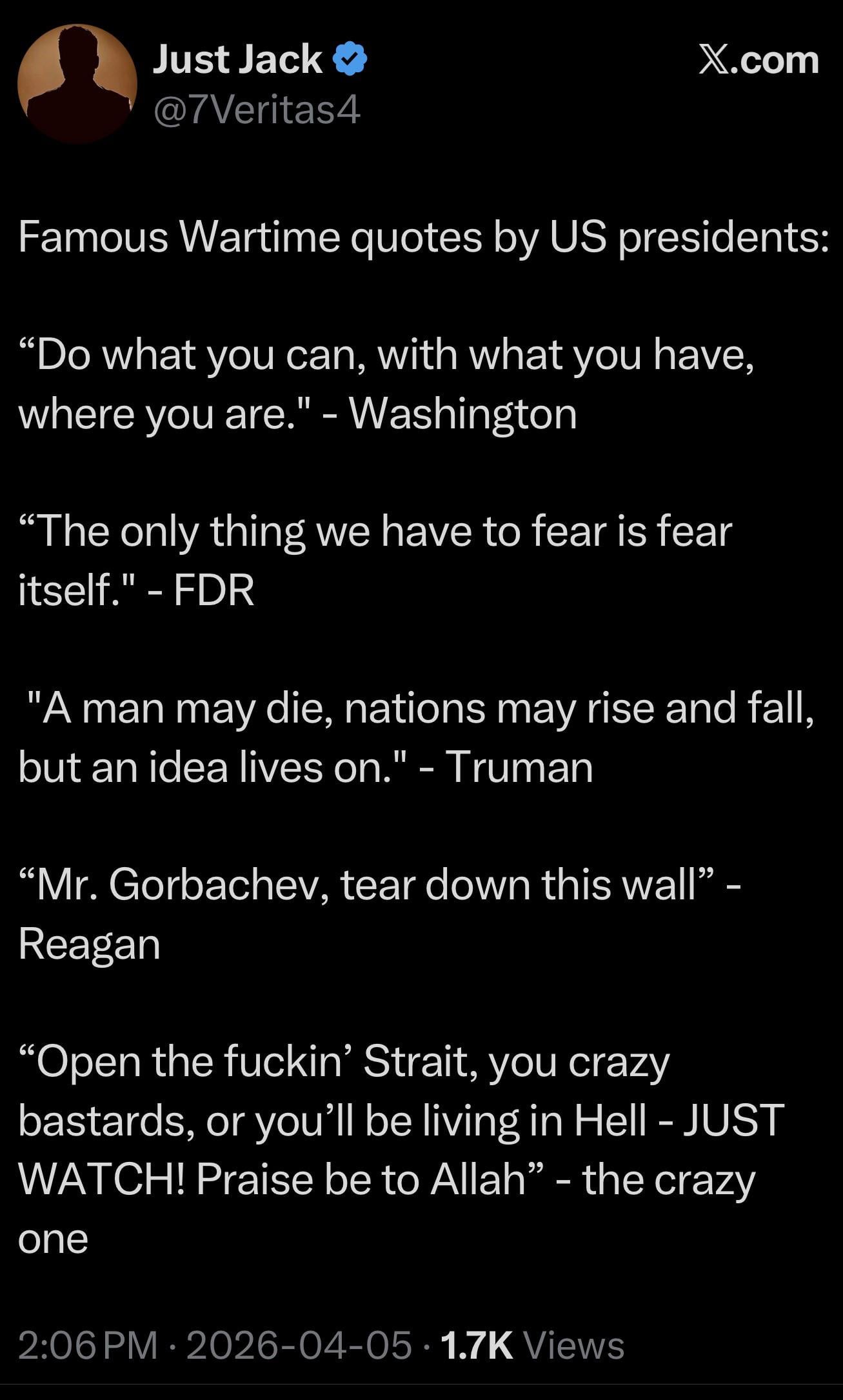 Sad that the poster has to remind current Americans which one of the quotes is the crazy one.