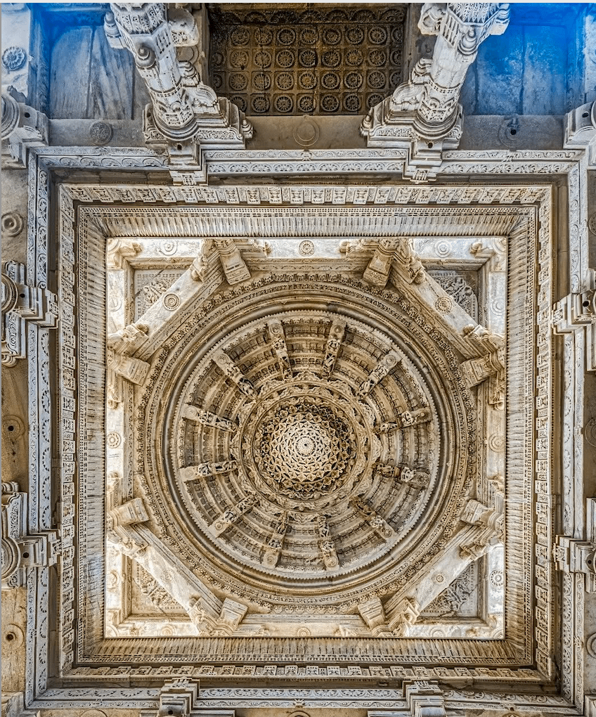 This intricately sculpted ceiling of the Ranakpur Jain Temples captures the pinnacle of Māru-Gurjara architecture, where geometry meets spirituality. Built in the 15th century under the vision of Dharna Shah,Ranakpur Jain Temple Rajasthan, India[848 × 1020]