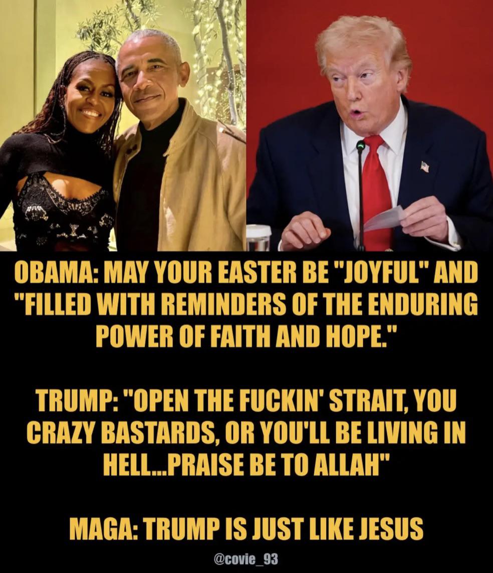 b_tight on April 5, 2026 11:10 pm If it wasnt an actual life and death situation donolds text is hilarious in its absurdity. Its completely unhinged