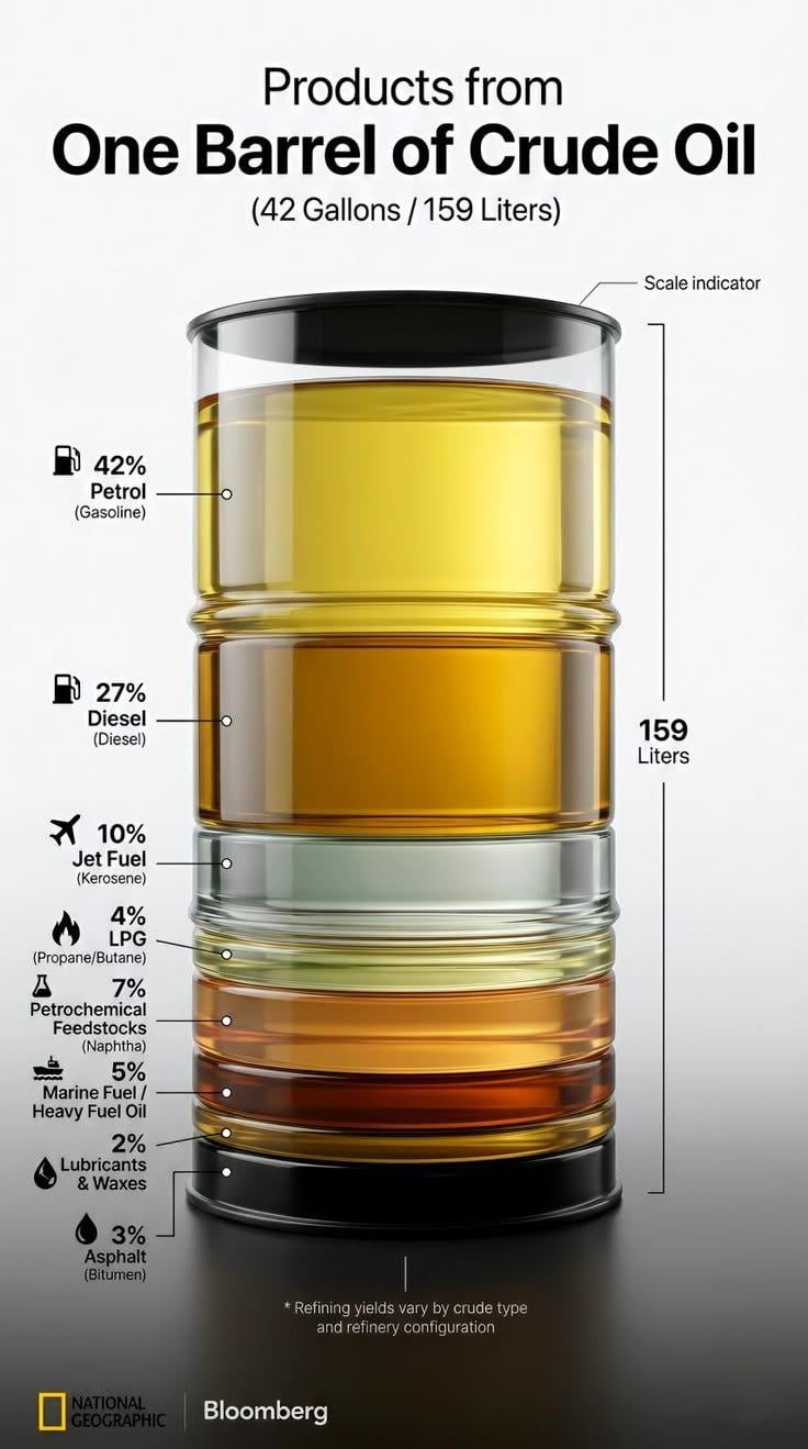 And funny enough, out of all that oil, not much of it goes to create motor oil. Though today most cars use synthetics.