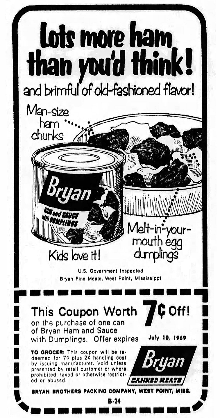 Bryan Ham and Sauce with Dumplings – April 1969
