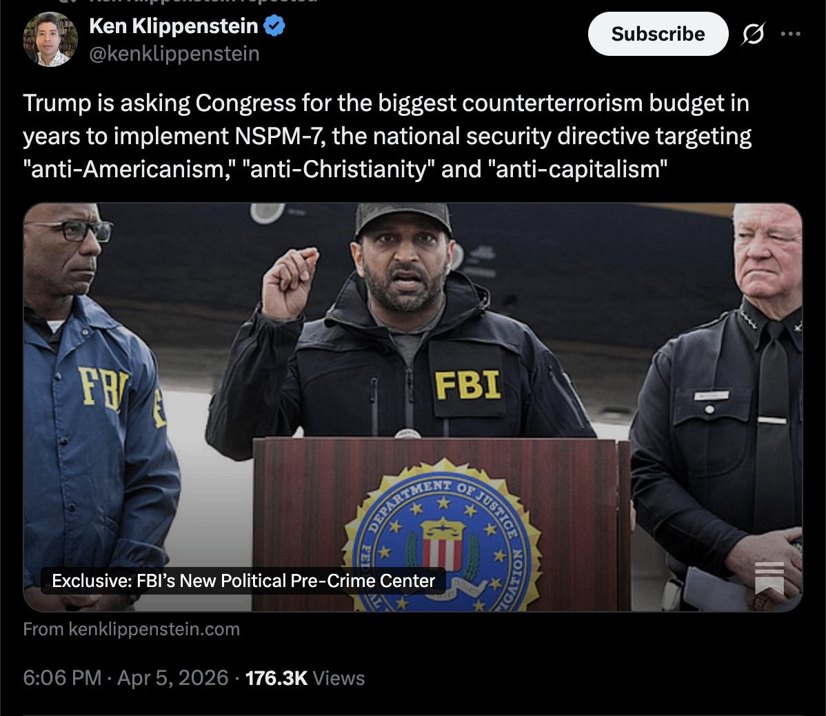 They want to label these as “ideologies of domestic terrorism”, Kash has also been ordered to be “proactive” in hunting down domestic terrorists. That coupled with all these new “detention facilitates” they are building should make people scared