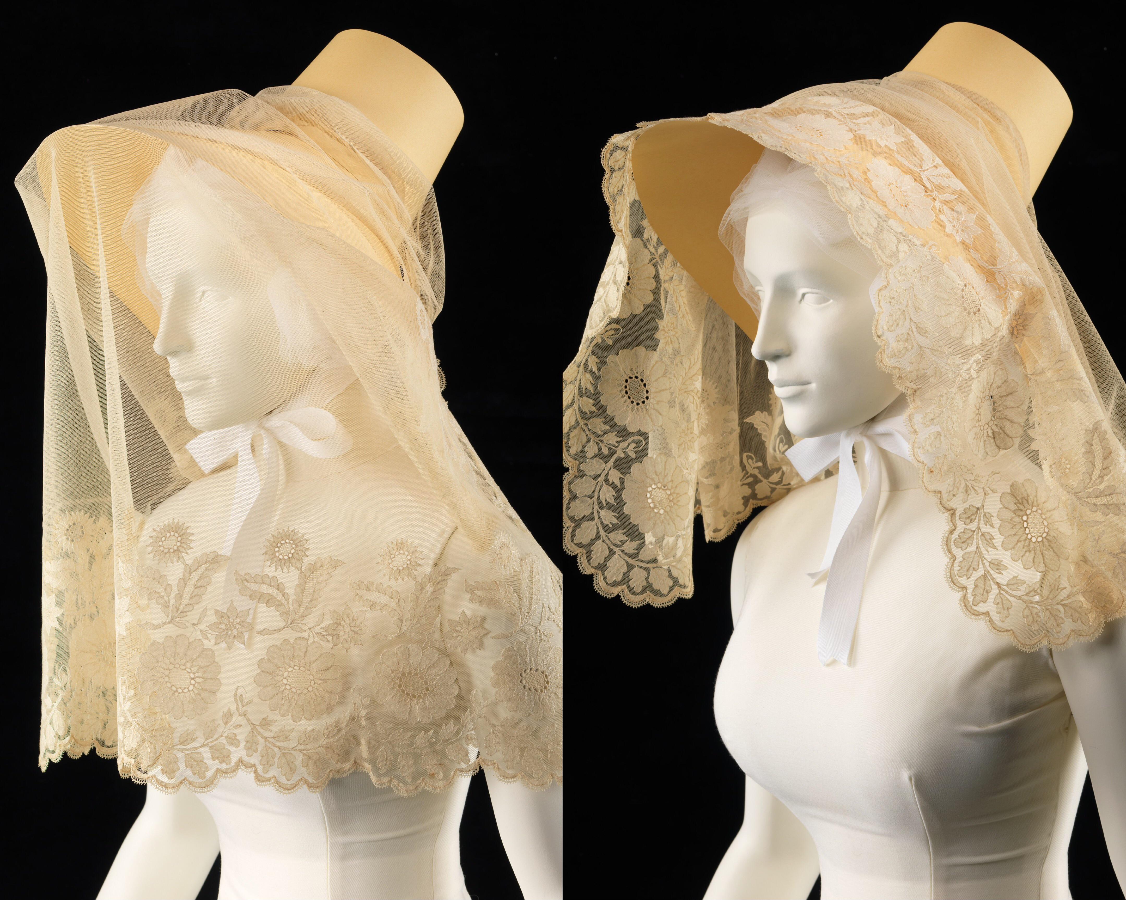 “Hat veils like this were worn both to partially conceal the face modestly and also off the face, around the hat, to decorate it, as well as to facilitate flirtatious glances.” [The Met](https://www.metmuseum.org/art/collection/search/158456)