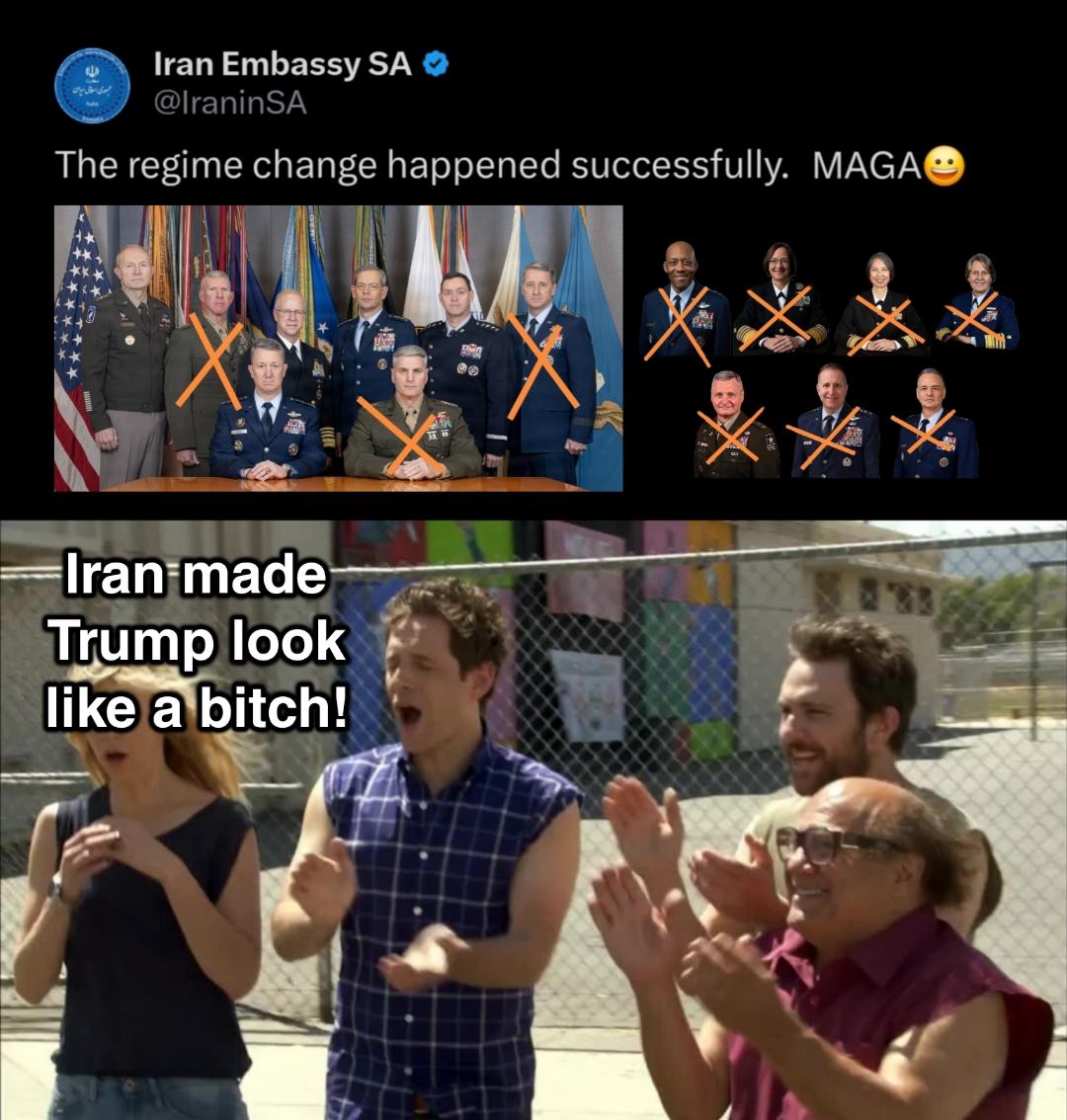 5. Imagine losing a war all because of shitposts and AI slop, that’s the US military under Trump