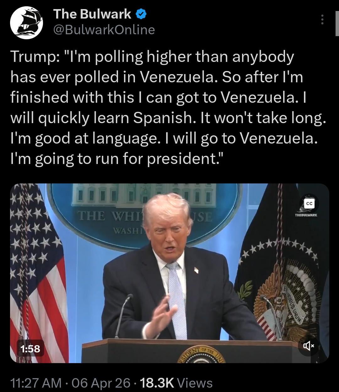 I’m surprised the room didn’t erupt in laughter when he said “I’m good at language.”
