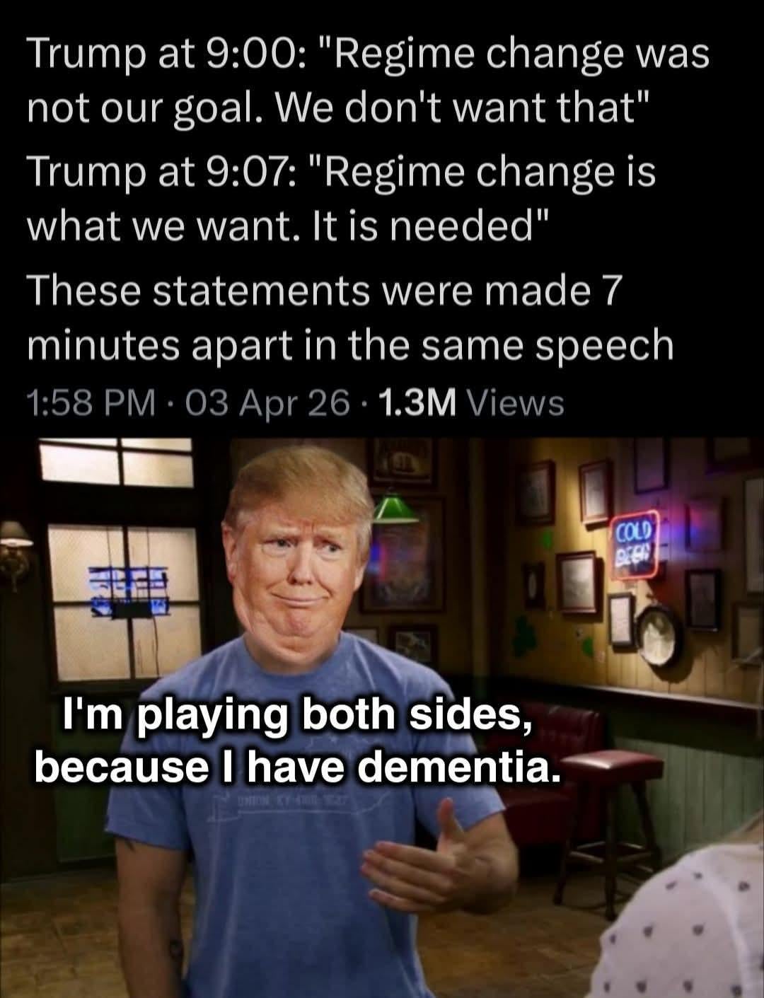 I saw it explained somewhere that he doesn’t care about immediately contradicting himself because only the 1 sound bite will ever reach his followers. We can say, but he literally JUST said “xyz” and they will reply, FAKE NEWS, I just saw AND heard him say exactly the opposite!