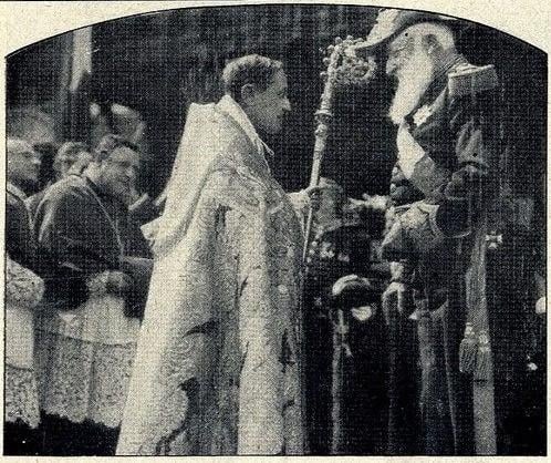 Belgian King Leopold II meeting with future Pope Benedict XV, 5 years before his appointment to the papacy, 1909. The Catholic Church overwhelmingly supported Leopold throughout his brutal 23-year ownership of the Congo Free State, during which millions are thought to have died. (500×418)