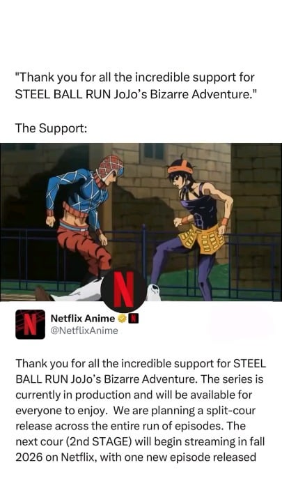 not even trying to pun but what a bizarre situation that was. A bunch of people renewed their subscription literally JUST to watch Steel Ball Run and they pulled that bullshit off
