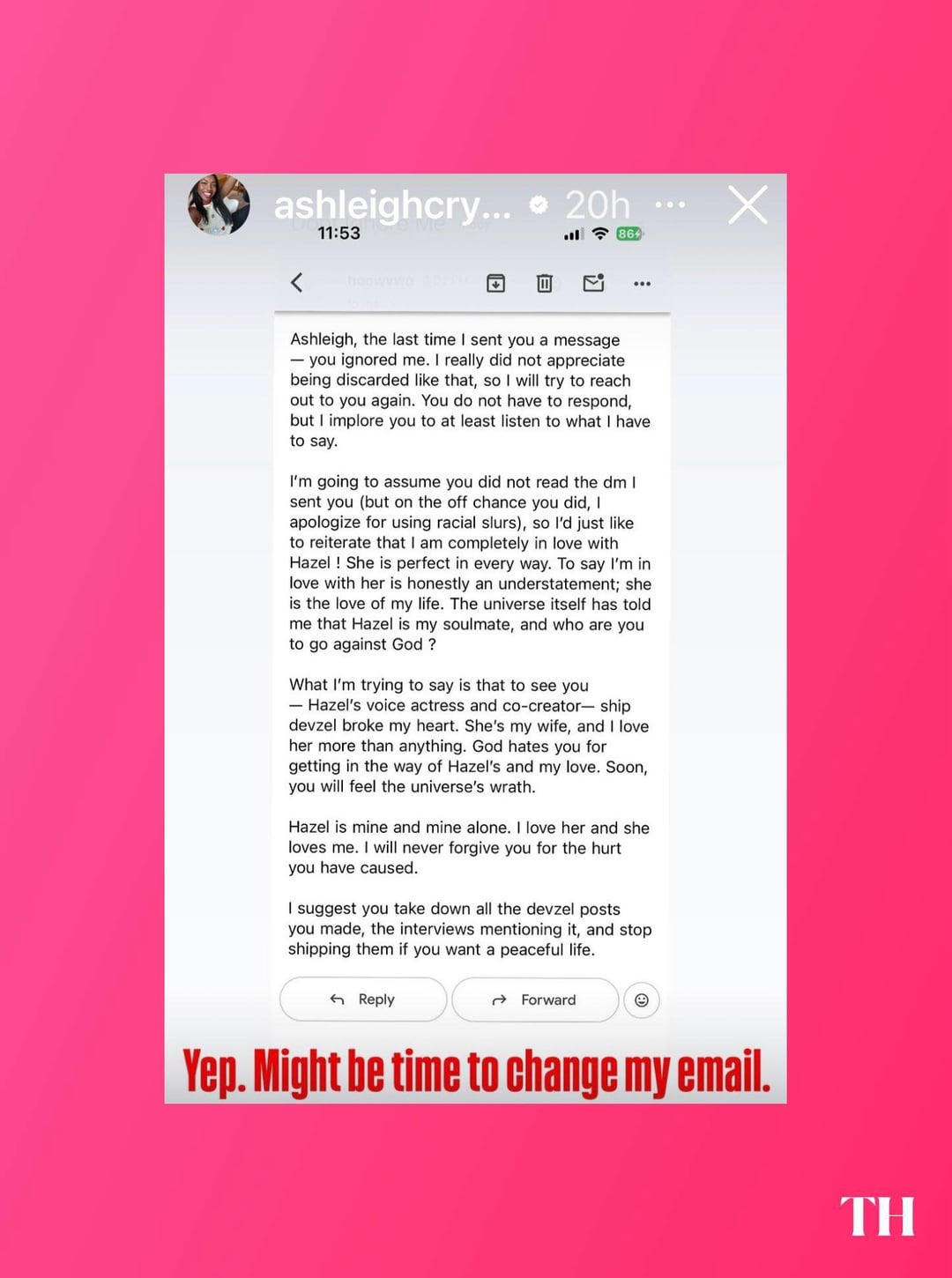 Looks like it was written with AI. Stalkers can’t even write their own deranged letters any more smh