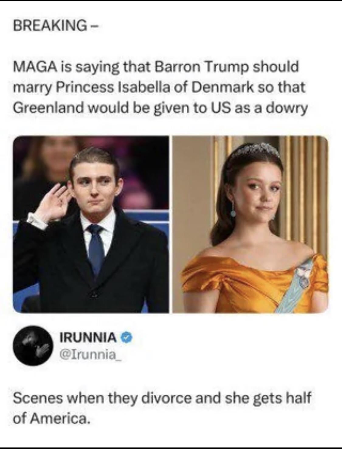 Neither would Barron obviously, but the confusion is semi warranted given it is stupid AF Denmark still has princesses