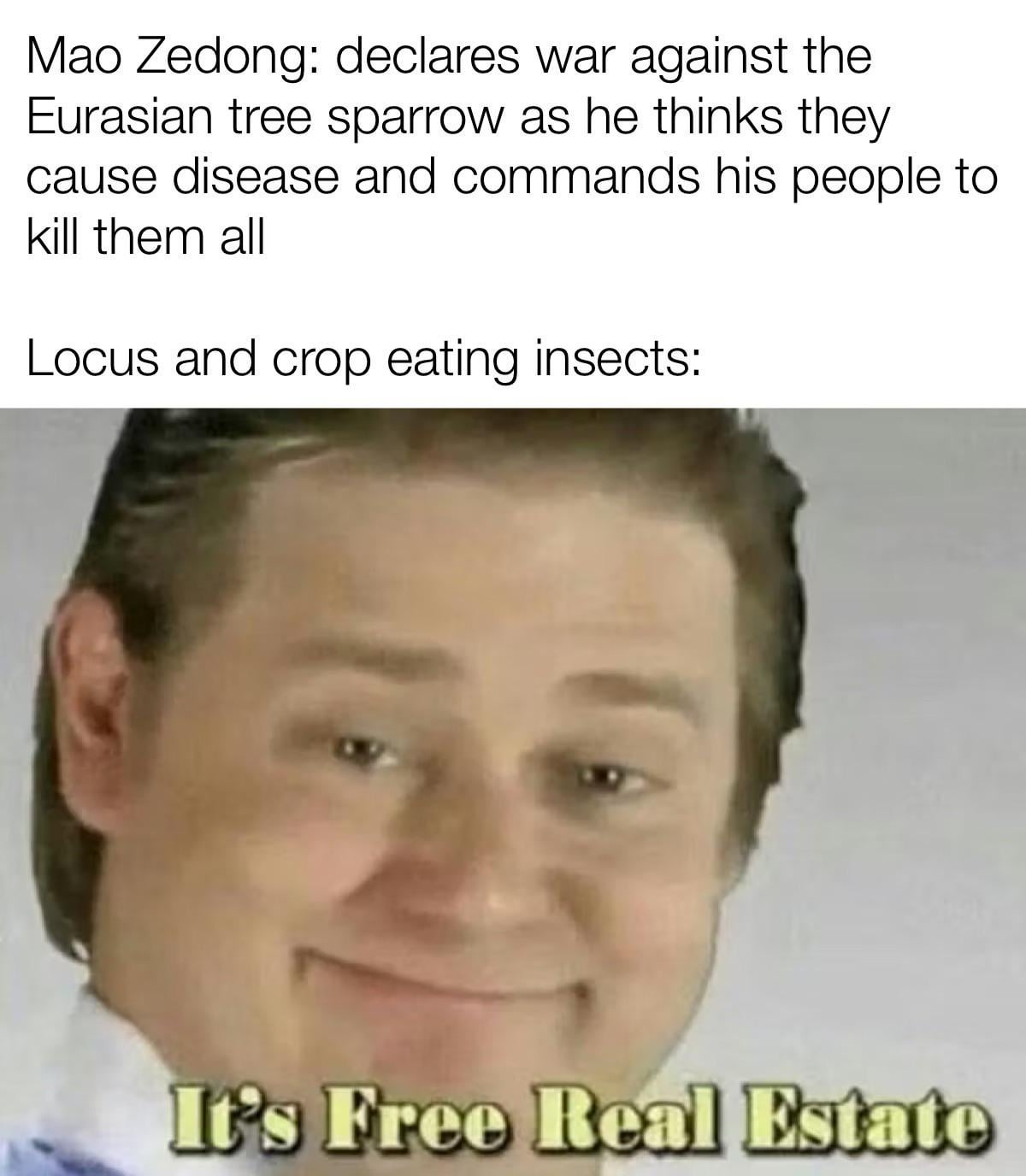 Tons of people definitely did realize. Farmers know their stuff, and even some of Mao’s officials might have known too, however disagreeing with the supreme leader meant death, or worse, and so everyone kept quiet