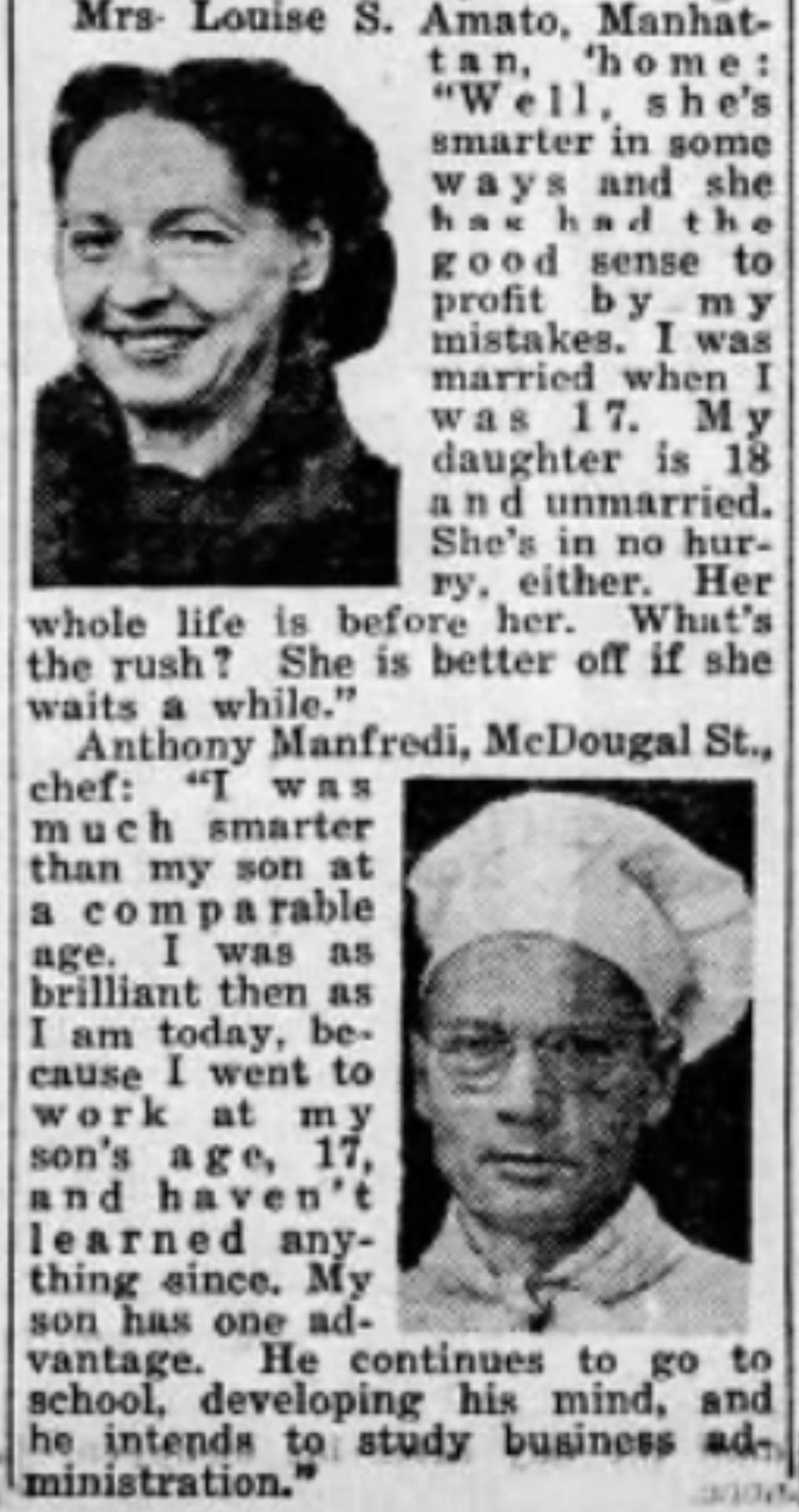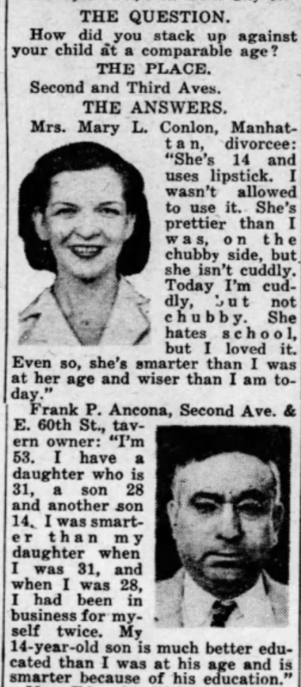 Inquiring Photographer: “How did you stack up against your child at a comparable age?” Dec 17, 1947