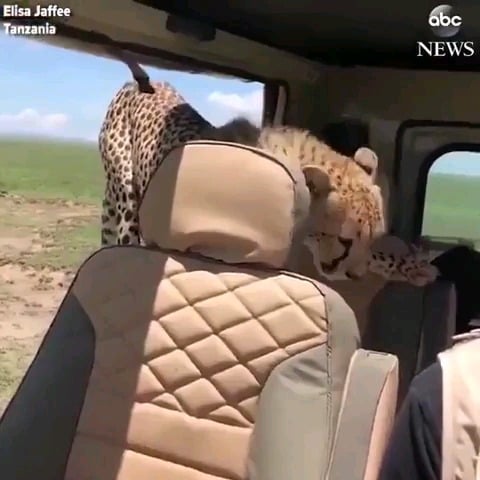Yea, odds are this is a cheetah farm where they rely on humans for survival. A wild cheetah getting into your vehicle on a game reserve is super unrealistic.