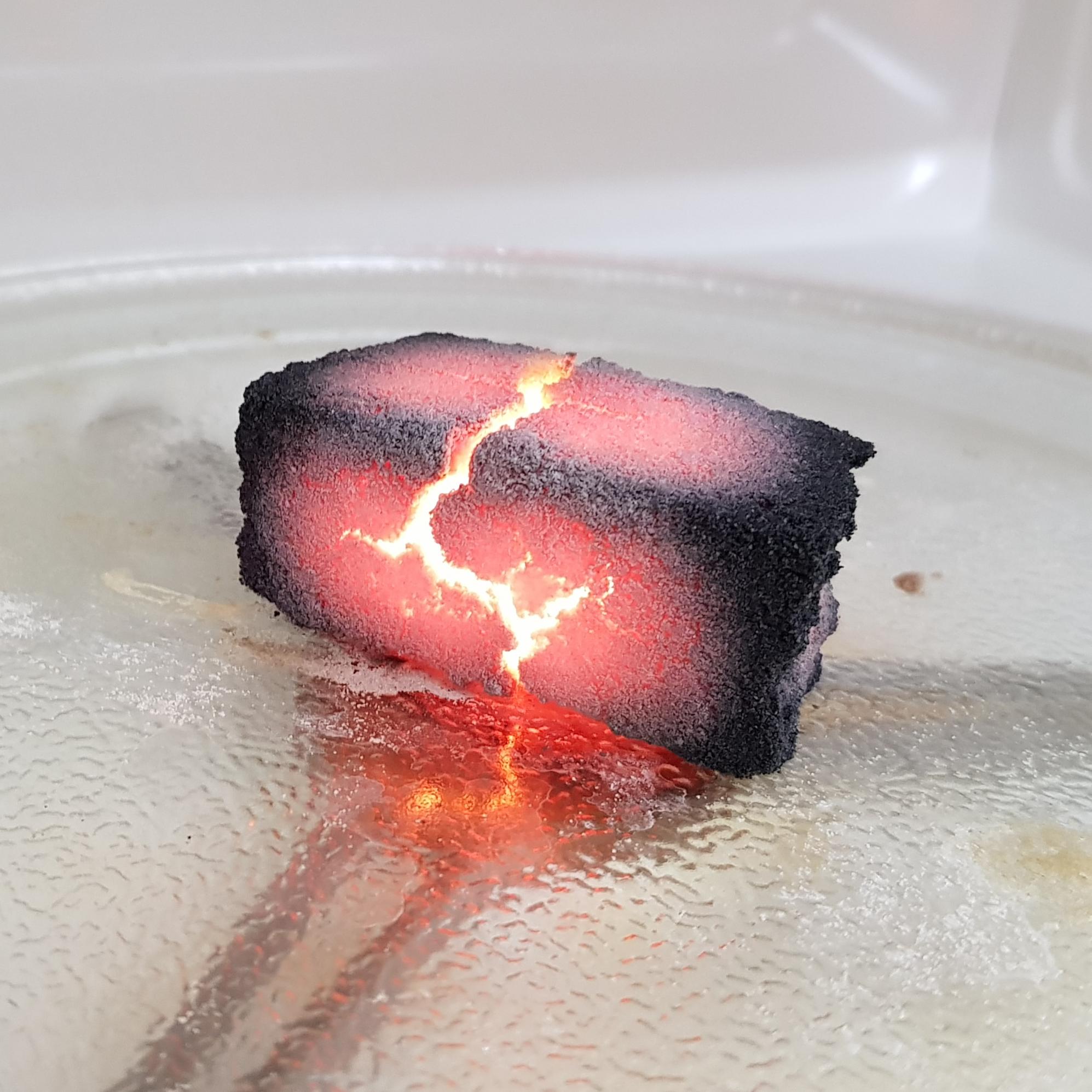 Was experimenting with carbon additions to moulding sand and drying the samples in a microwave oven. In case of this specimen time was too long.