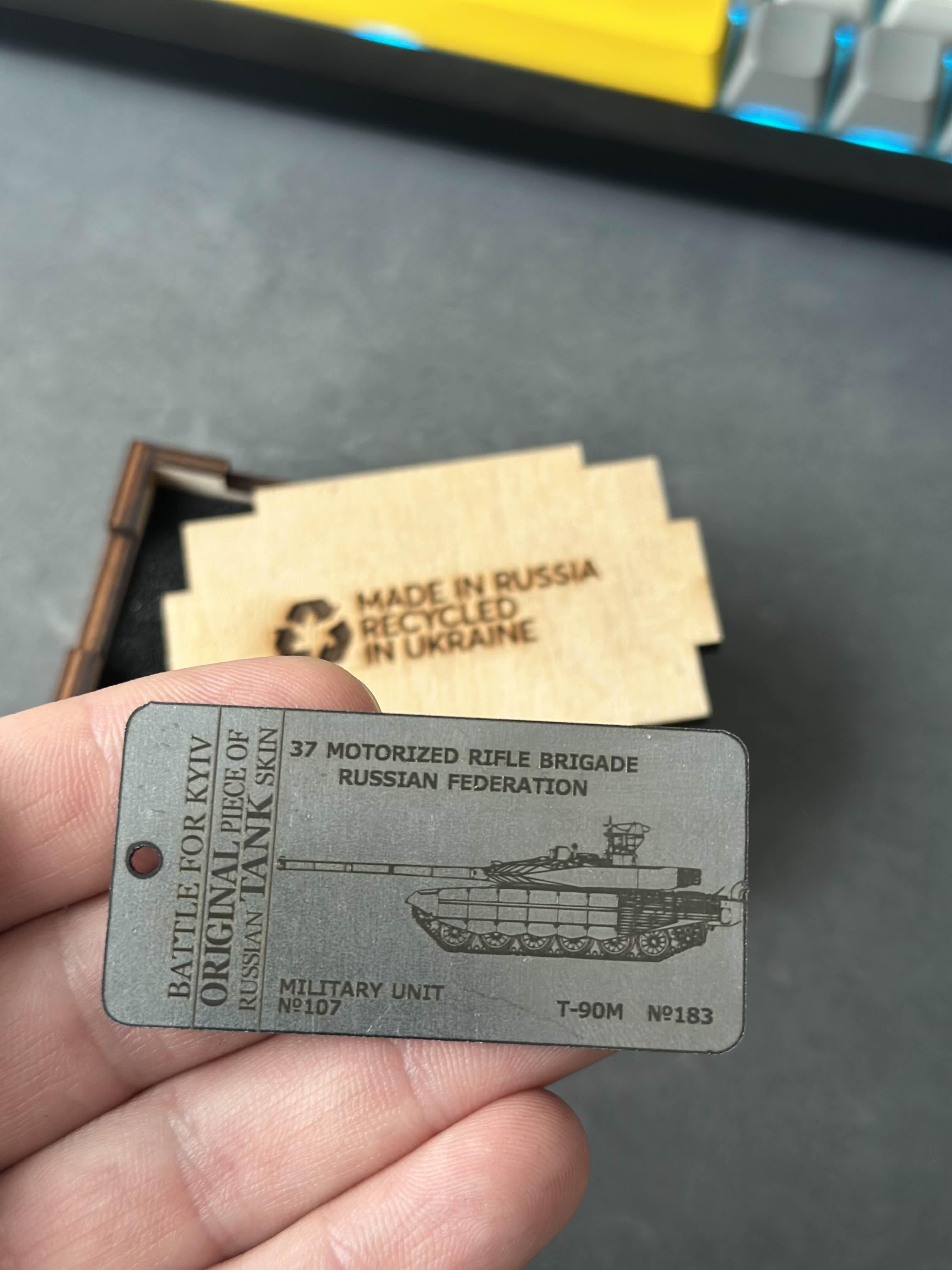 I recently got it from [https://www.createdinukraine.com/products/metal-keychain-piece-of-russian-tank-made-in-ukraine-1](https://www.createdinukraine.com/products/metal-keychain-piece-of-russian-tank-made-in-ukraine-1)