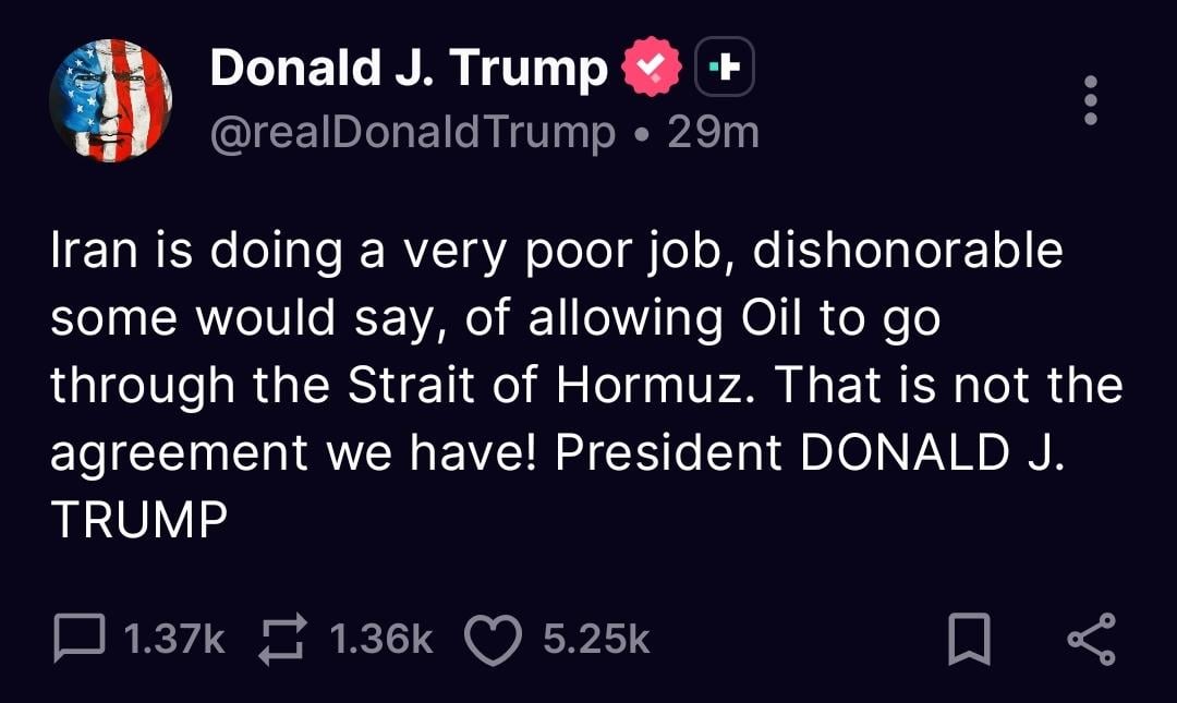 This is more about Trump trying to convince US citizens that Iran isn’t holding up their end. I wonder if the “agreement” even states how many ships per day to let through…my guess is that it doesn’t and Iran is holding up their end.