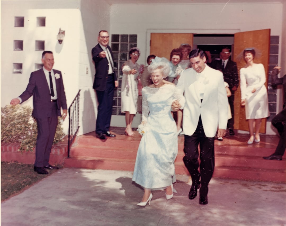 All the white grainy stuff is the handfuls of rice being thrown at them