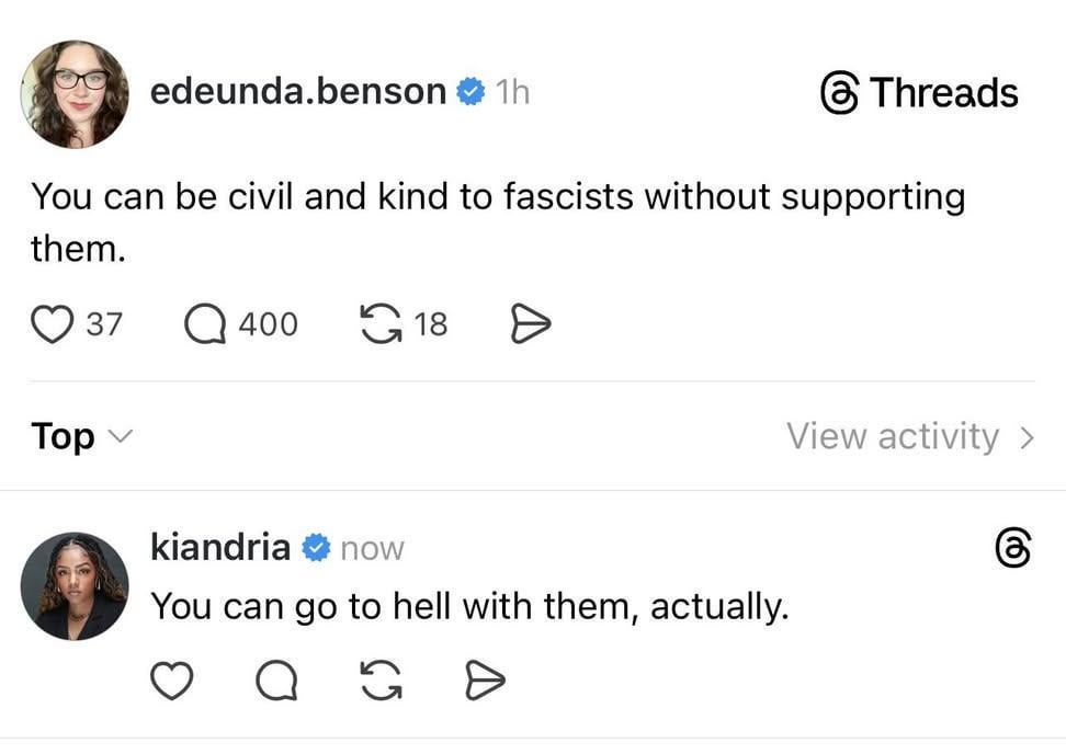 Coming from the person fascists would actually be civil to ofc. So tired of ignorant people