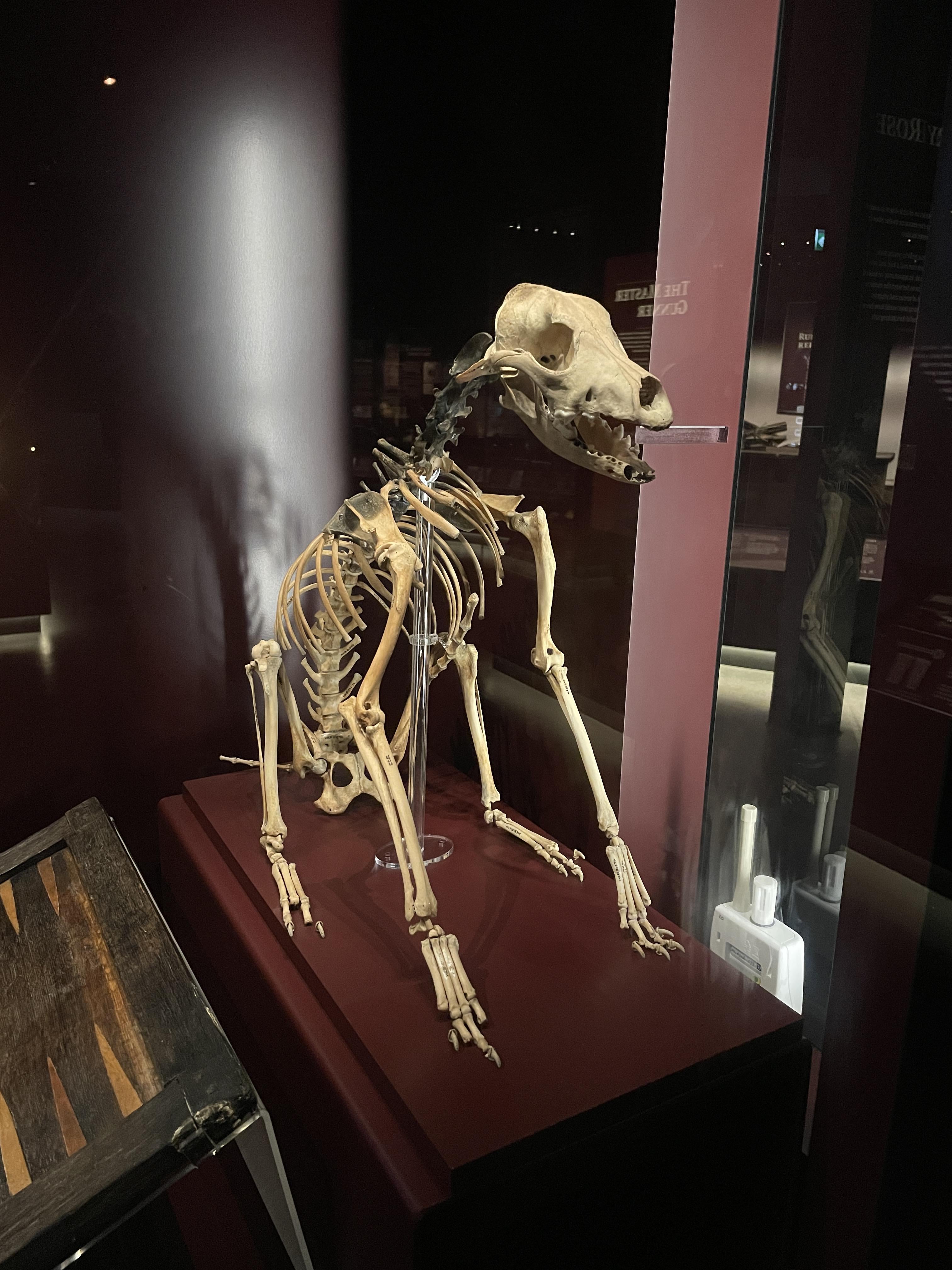 Skeleton of Hatch dog on board the Mary Rose responsible for catching rats. According to DNA performed on his teeth, he was a young adult male, between 18–24 months, with a light brown-dark brown coat. He may have spent his entire life on-board the Mary Rose, rarely if ever going ashore[3024×4032]