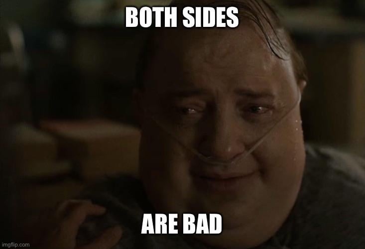 Many from the Republican base, know their party is full of shit bags. Those are the people hiding behind “both sides are bad.”