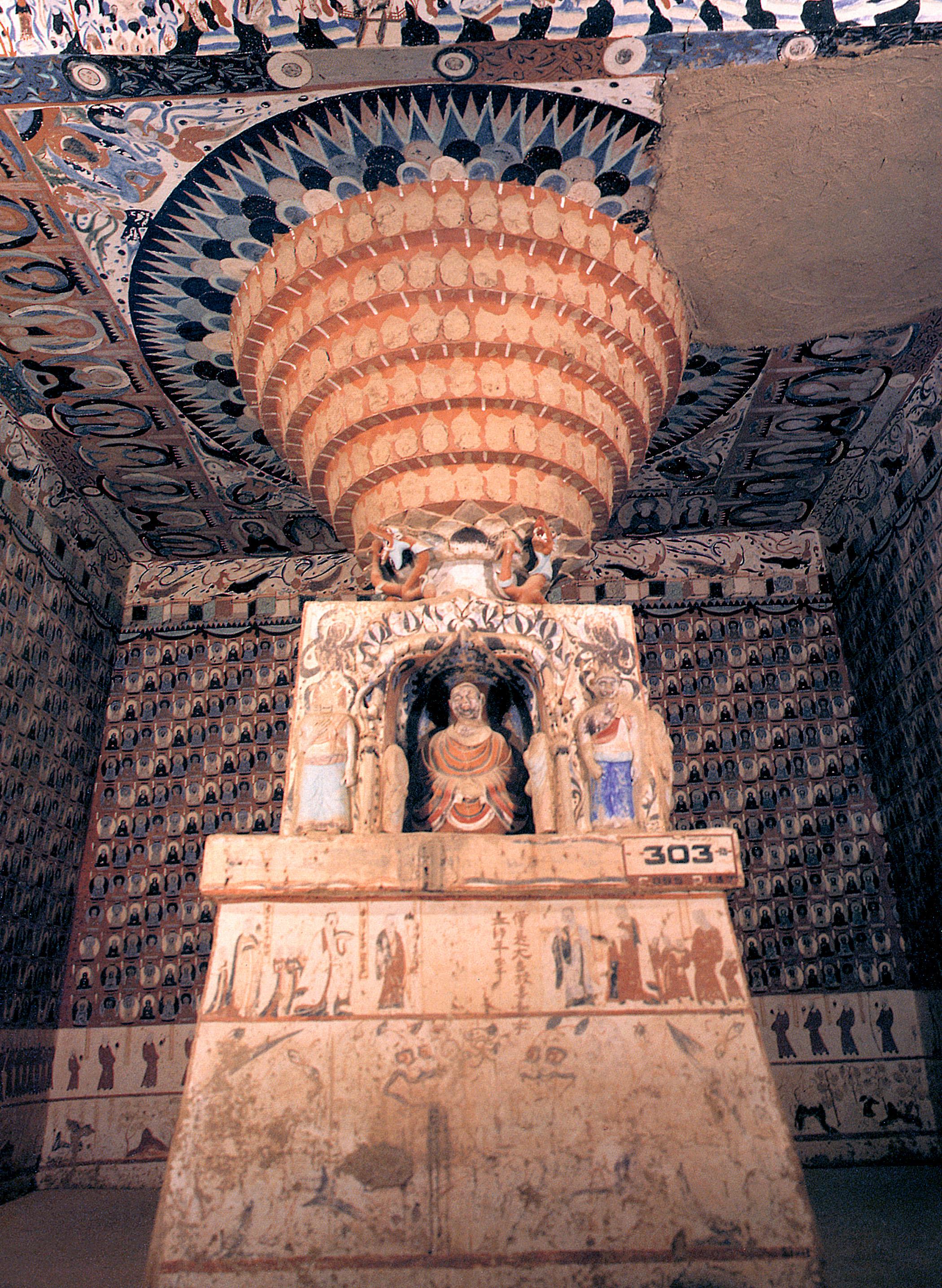 Inside Mogao Cave #303, with rock-cut altar and Buddhist murals. China, Sui dynasty, 581-618 AD [2100×2870] by MunakataSennin