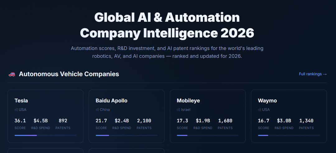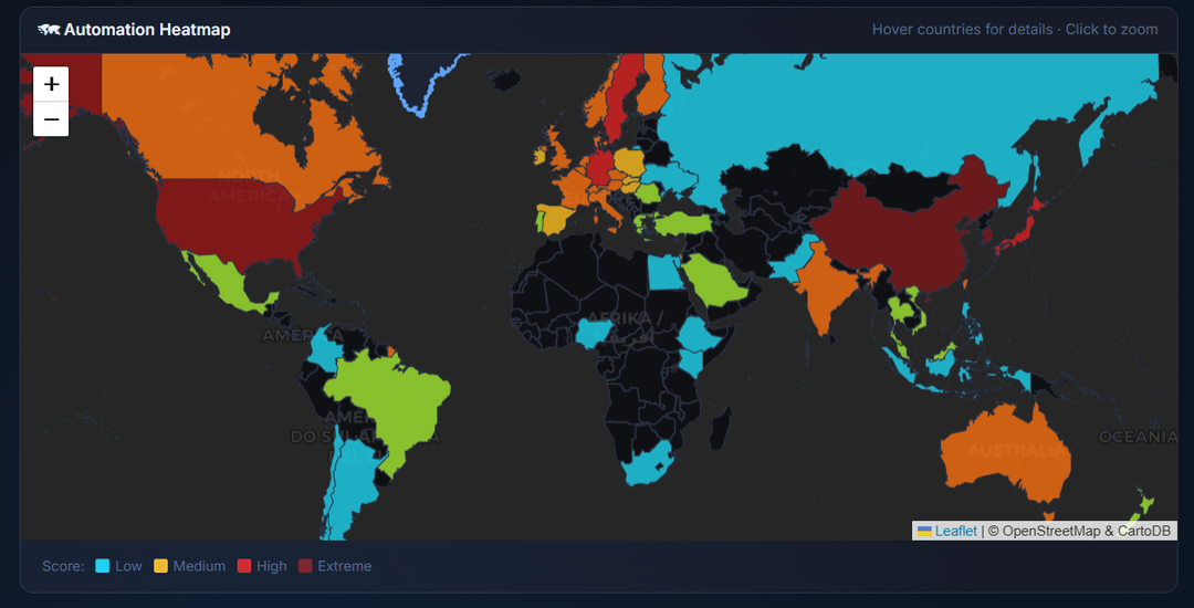 * Automation Score: (robot density × 0.40) + (AI data centers × 0.50) + (AV fleet × 0.003)
