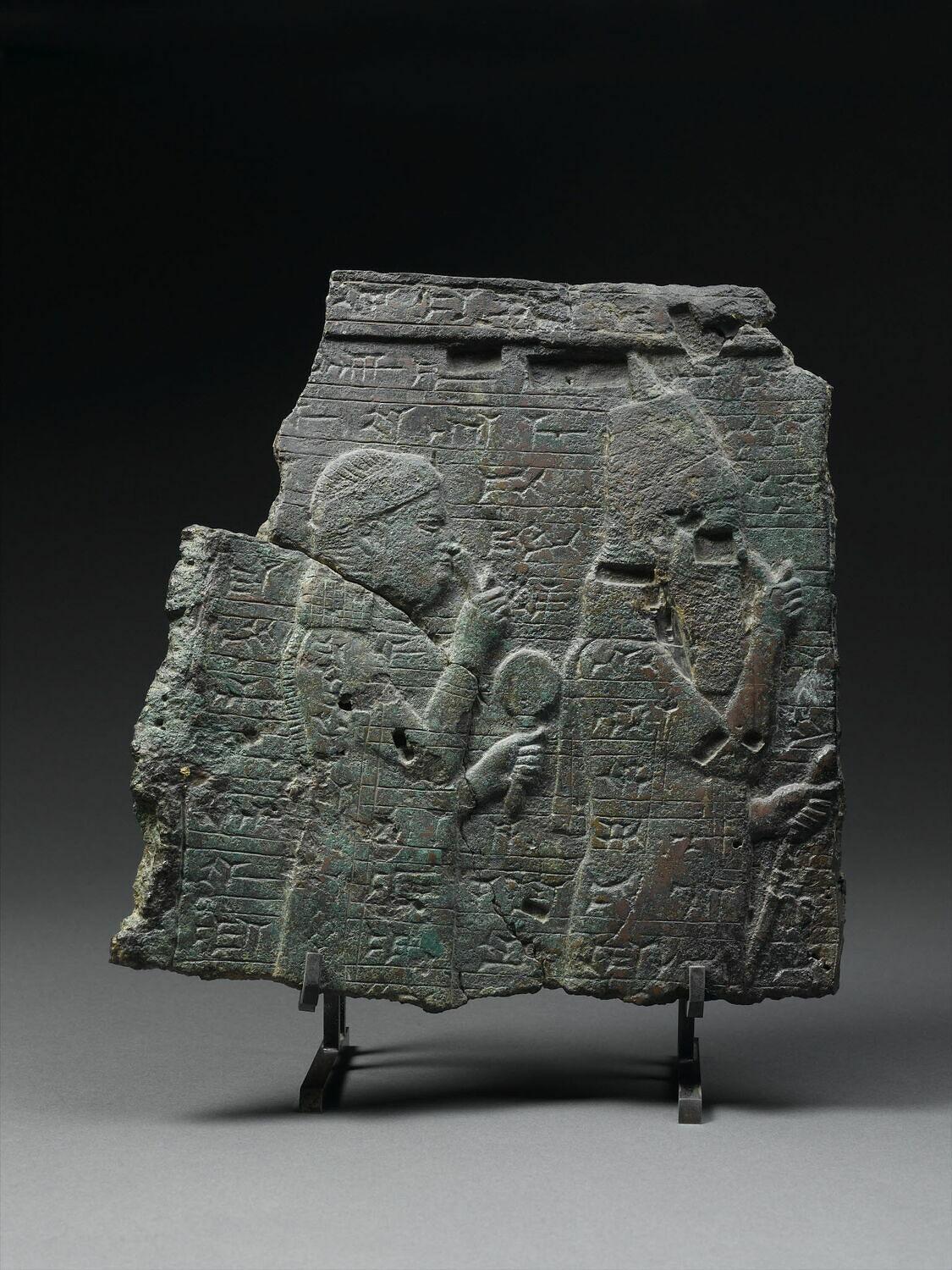 Assyrian relief depicting Esarhaddon (right) with his mother Naqi’a. She is one of the few women depicted in Assyrian art, and the only Assyrian figure other than a king to write a treaty. [1125 x 1500]