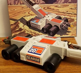 Battlestar Galactica Colonial Scarab ground vehicle – Box art for 1978 Mattel toy . Art by Otto Kuhni who also did a lot of the art for Hot Wheels. by SevenSharp