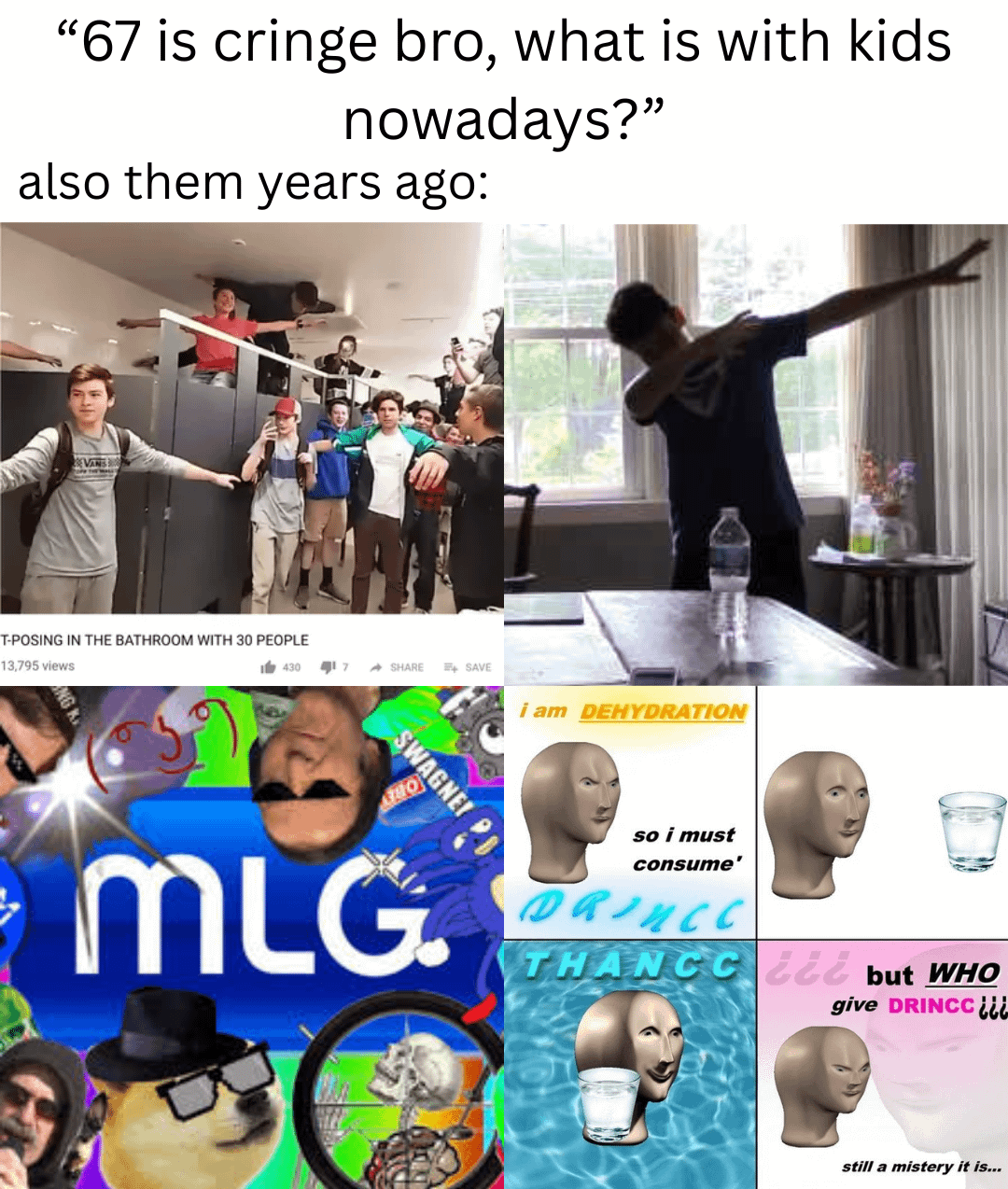 4. Im 30 and I laugh at the stupid 67 jokes, I was raised on YTP so don’t expect me to have a normal humor.