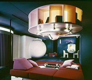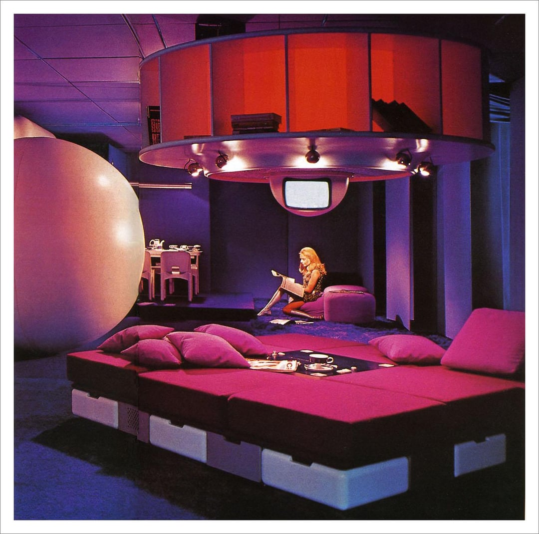The bed/sofa/whatever and storage carrel are interesting. That massive hemispherical bubo inserting itself into the room can go, though.